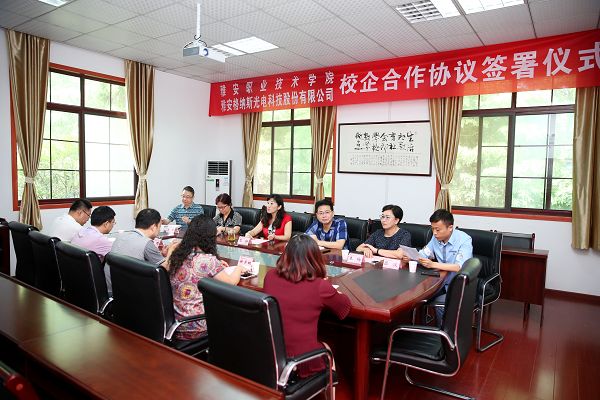 【本网讯】7月7日,雅安格纳斯光电科技股份有限公司校企合作、联合培养签约仪式在学院育才路校区行政楼211会议室举行。四川格纳斯光电科技股份有限公司董事长王斌、雅安格纳斯总经理王鹏、副总经理徐宇虹、事业部部长...