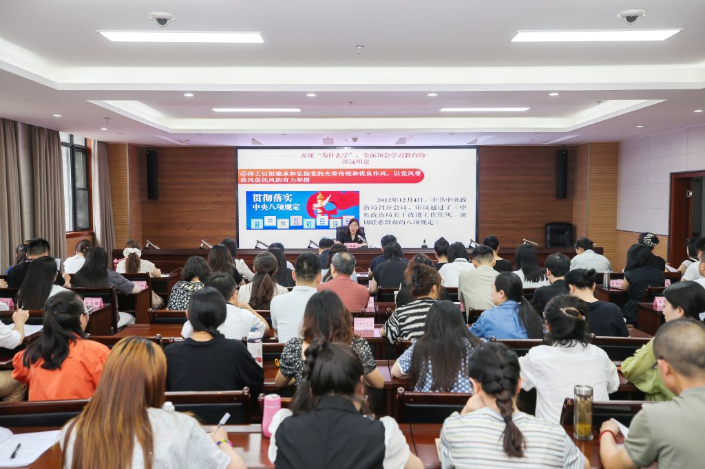 为深入贯彻中央八项规定精神学习教育,持续筑牢思想根基,强化行动自觉,6月19日,学校党委副书记杨洪媛在经开区综合楼 311 会议室,为新提拔干部、年轻干部、关键岗位干部代表以及党群党总支、基础医学院直属党支部全体党员共80余人讲授“深化作风建设 践行使命担当”专题党课。杨洪媛指出,在“两个大局”时代背景与严峻复杂的新形势、新要求、新任务下,在全党开展深入贯彻中央八项规定精神学习教育,充分体现了党中央持之以...