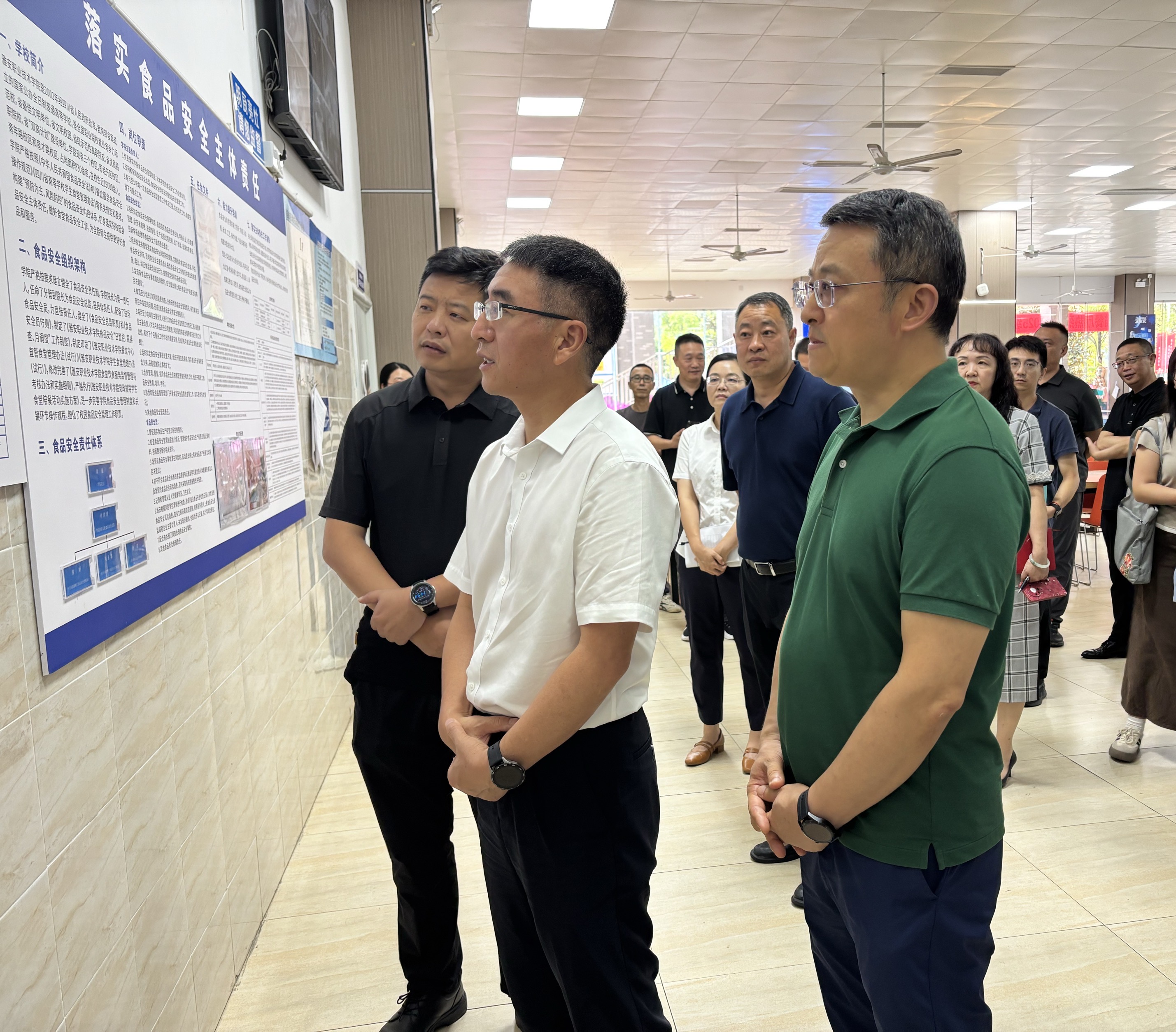 9月16日下午,市政府副市长、市公安局局长黄芝晏带队到学校经开区校区食堂开展食品安全“两个责任”包保督导工作。学校党委副书记、校长黄诚,党委常委、副校长付洪涛,市政府办、经开区管委会、市场监管局相关负责人陪同检查。黄芝晏一行对照食品安全“两个责任”任务清单,实地查看食堂食材仓库、食品加工操作区、粗加工区、配餐专间等功能区域清洁卫生与密闭管理情况,认真查阅从业人员培训和健康管理、进货查验、索票索证、...