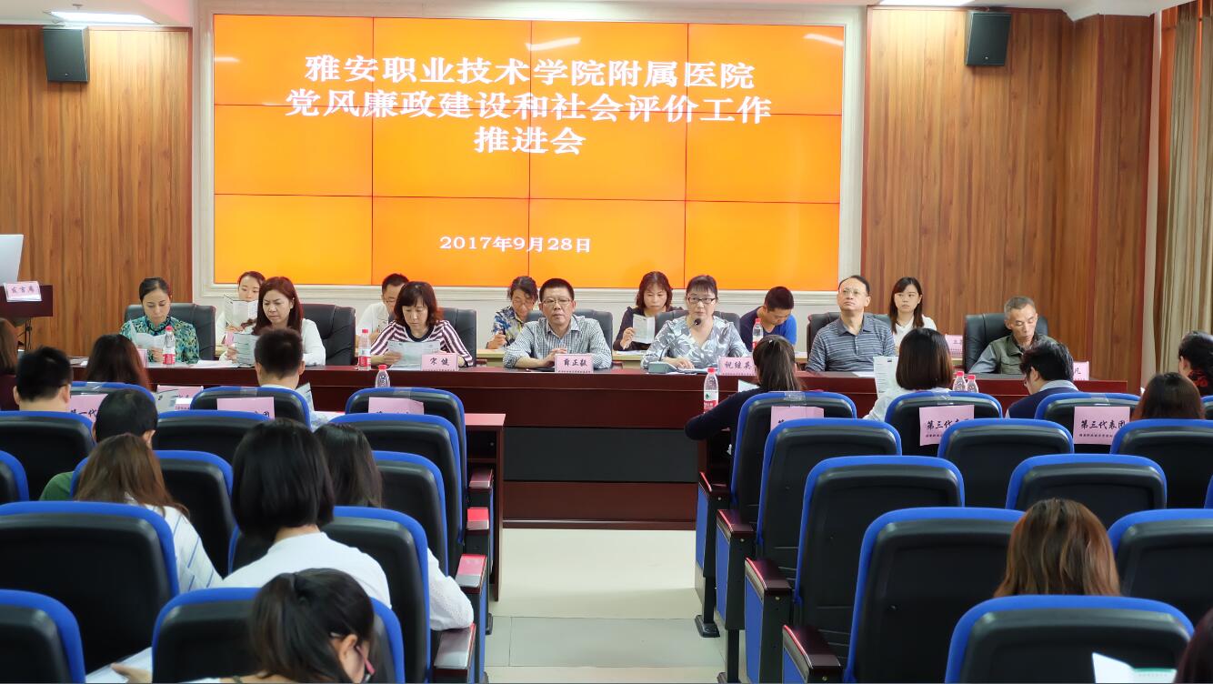 【本网讯】为深入贯彻雅安市卫计委、学院党委关于党风廉政建设和社会评价工作的部署要求,附属医院于9月28日下午在门诊大楼10楼学术厅召开党风廉政建设和社会评价工作推进会。会议由附属医院党支部书记祝继英主持,附...
