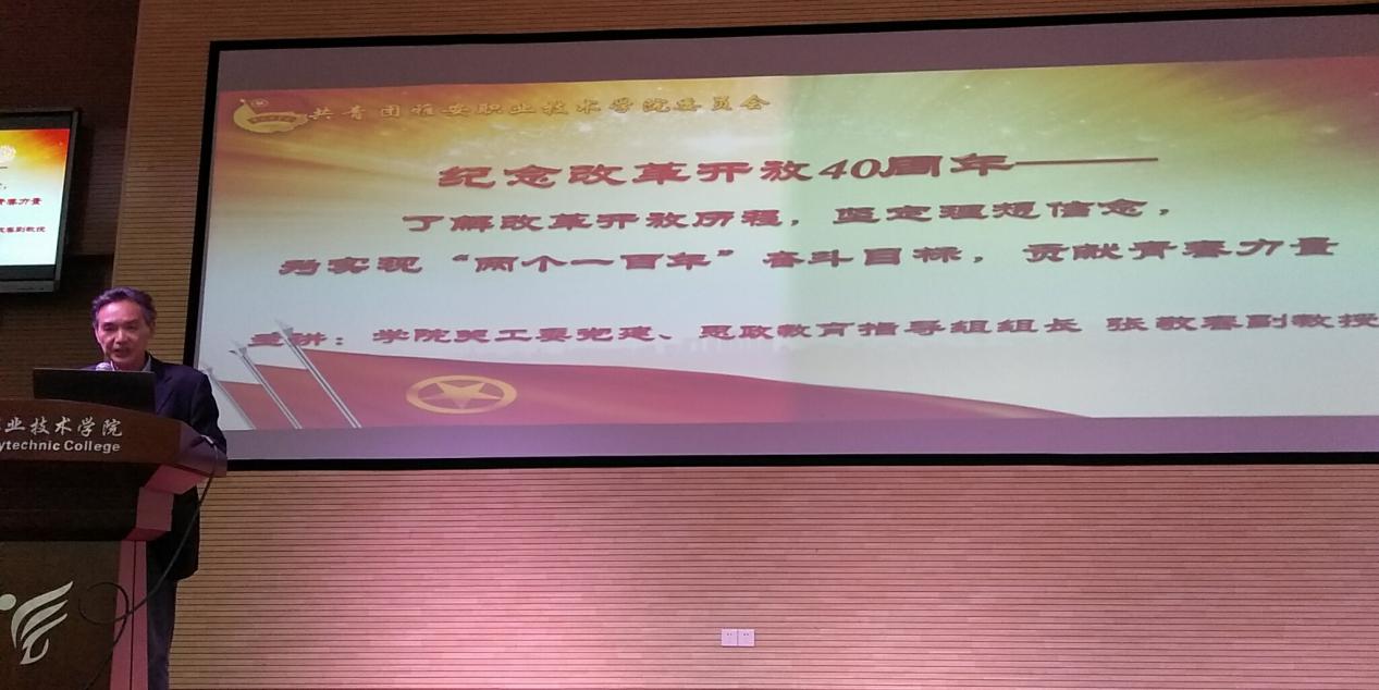 【本网讯】12月4日,学院关工委党建、思政教育指导组组长张敬春副教授、副组长李晓萍副教授,来到学院第六期团校学员中间,为同学们作了关于“改革开放40周年”的主题报告。院团委书记刘永恩、二级学院团总支书记,以...