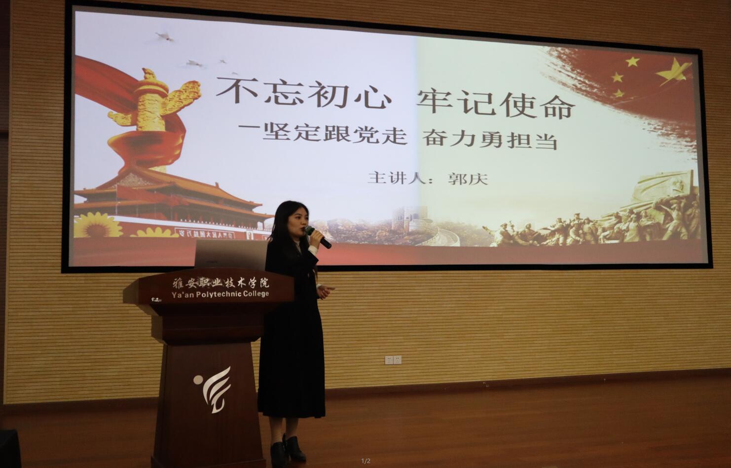 为了进一步推进“不忘初心,牢记使命”主题教育向纵深发展,抓实抓细学生思想道德教育工作,11月5日下午团委副书记、思政部教师郭庆在青年路校区多功能厅做了题为《“不忘初心,牢记使命”坚持跟党走,奋斗勇担当》的...