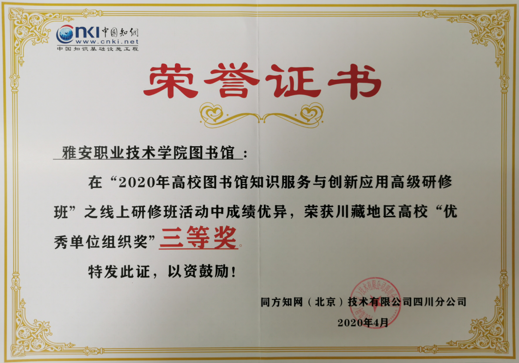 05-13-2020图书馆在“2020年高校图书馆知识服务与创新应用高级研修班”之线上研修活动中获奖