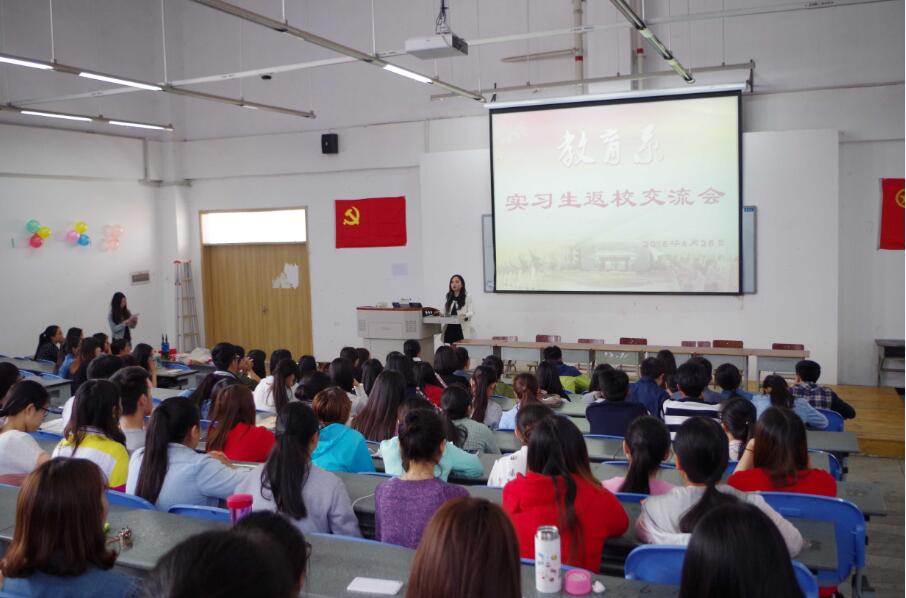 【本网讯】4月26日下午,教育系实习生返校交流会在青年路校区图阶101、102教室开展。来自2013级的各个专业的优秀实习生代表郑无霜、曾梦德、杨泽芳等为即将面临实习的2014级同学分享了实习经验。 交流中,实习生代表...