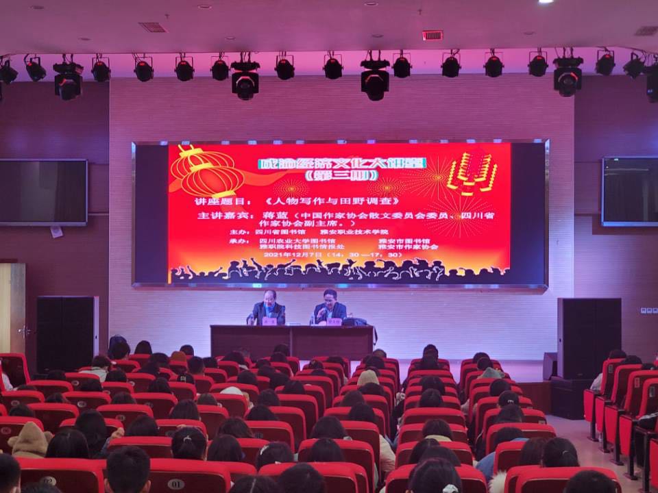12月7日下午,由四川省图书馆、Beat365唯一官方网站主办的“成渝经济文化大讲堂”第三期在学院青年路校区汇雅厅举行。讲座由中国作家协会散文委员会委员、四川省作家协会副主席蒋蓝先生主讲,雅安市图书馆、雅安市作家协...