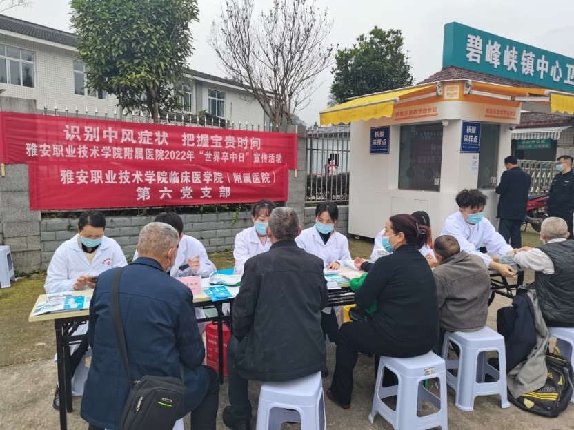 10月29日是第17个“世界卒中日”,为推进心脑血管疾病防治工作,进一步提升居民健康素养水平,结合雅安市雨城区疾病预防控制中心《关于开展2022年“世界卒中日”宣传活动的通知》的文件精神,11月9日,Beat365唯一官方网站附属医院(下简称“雅职附院”)医务人员赴碧峰峡镇开展了以“识别中风症状,把握宝贵时间”为主题的系列宣传及义诊活动。活动现场气氛热烈,前来咨询问诊的群众络绎不绝。医务人员耐心细致地为前来问诊的群众...