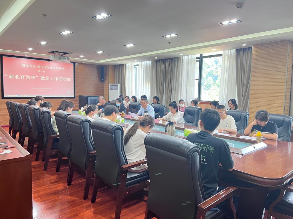 5月30日,“雅职有约 师生面对面”系列活动第三期在经开区校区综合楼303会议室顺利开展。本次活动主题为“就业有为来—就业工作面对面”,学院党委委员、副院长樊先茂参加座谈,团委、招生就业处相关负责人及35名学生代表参会。会上,招生就业处介绍了学院就业课程、就业服务、招聘活动、就业平台资源、困难毕业生就业帮扶等相关内容。学生代表们结合专业及自身实际情况,围绕求职、就业等相关问题和疑惑进行了咨询,与会领导、...