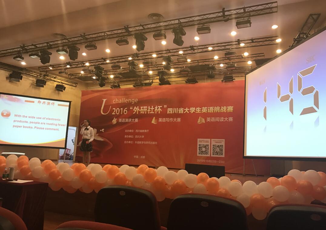【本网讯】10月23日,2016年“外研社杯”全国大学生英语挑战赛四川赛区高职组赛事在四川大学望江校区落下帷幕,来自四川三十多个高职院校的参赛选手分别参加了英语演讲比赛、英语写作比赛和英语阅读比赛。通过激烈的...