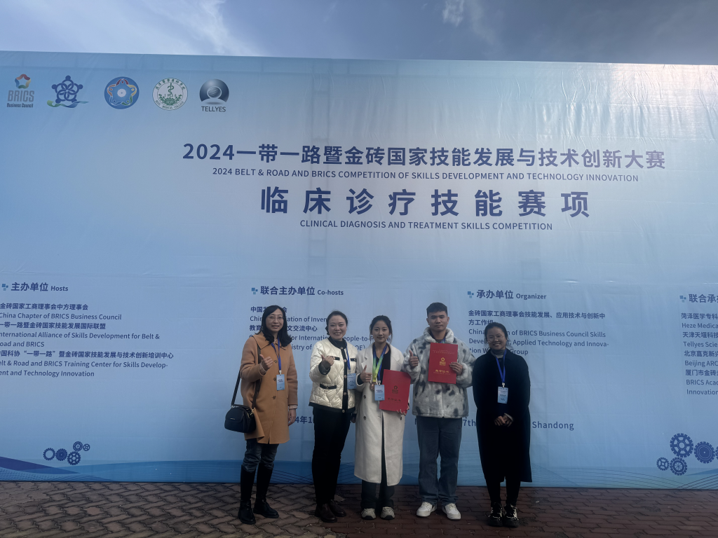 11月14日至17日,“2024一带一路暨金砖国家技能发展与技术创新大赛临床诊疗技能赛项”在山东菏泽医学高等专科学校顺利举行。 来自全国45所高职高专院校的代表队同台竞技,竞争激烈。我校临床医学院靳太生、张彤两位学生荣获团体三等奖。此项赛事是由金砖国家工商理事会、一带一路暨金砖国家技能发展国际联盟等机构联合主办的国际性临床技能赛事,旨在加强金砖国家间医疗技术交流与合作,提升临床技能人才培养质量,推动医疗卫生...