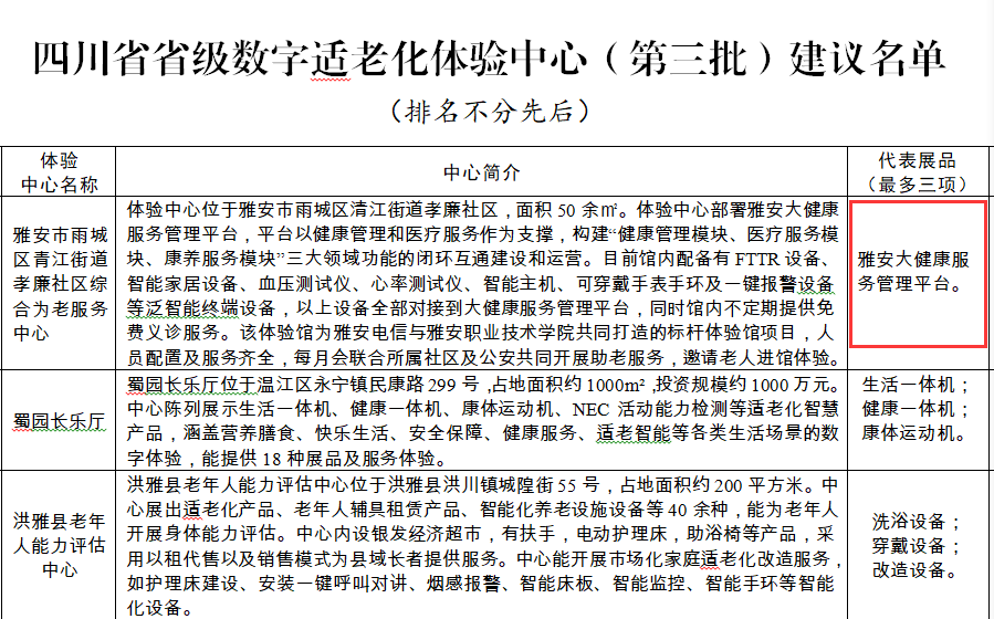 01-13-2025学校大健康服务管理平台入选四川省省级数字适老化体验中心(第三批)建议名单和四川省智慧适老化应用服务推广目录建议名单