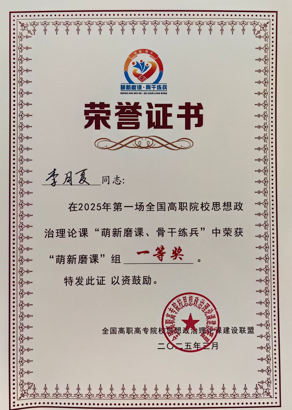 04-03-2025喜报丨学校教师获2025年全国高职院校思政课“萌新磨课•骨干练兵”教学展示活动一等奖