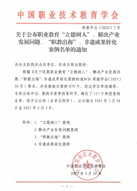 04-07-2025学校育人案例入选中国职业技术教育学会职业教育“立德树人”典型案例