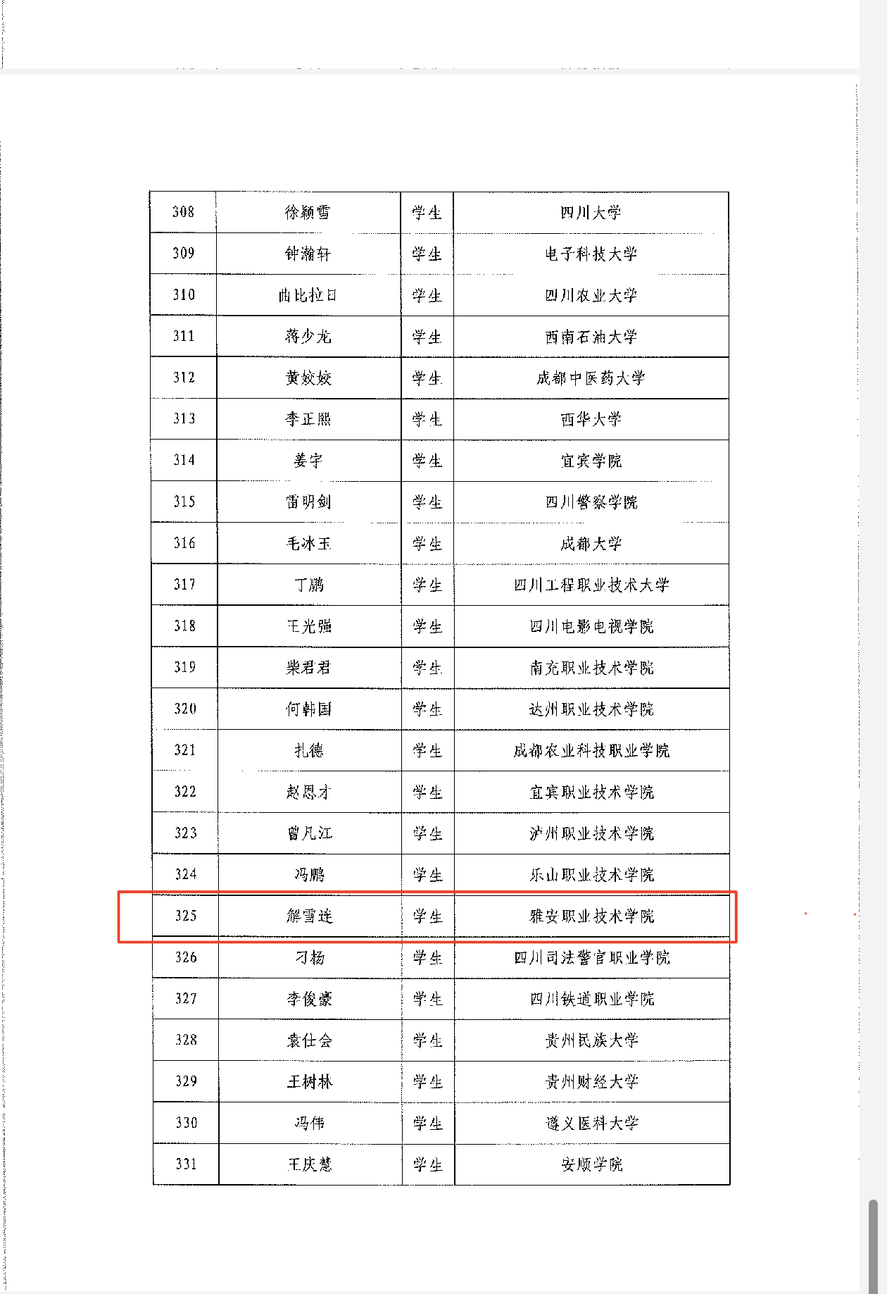 近日,教育部、中国教育发展基金会公布2024-2025年度“高校毕业生基层就业卓越奖学(教)金”名单,今年全国418名毕业生获得此项荣誉,四川省高校毕业生有20人获得,其中仅有9所高职专科院校毕业生入选,我校2017级护理专业毕业生解雪连位列其中。“高校毕业生基层就业卓越奖学(教)金”由教育部高校学生司(高校毕业生就业服务司)、教育部学生服务与素质发展中心共同指导,中国长江三峡集团有限公司出资,中国教育发展基金会...