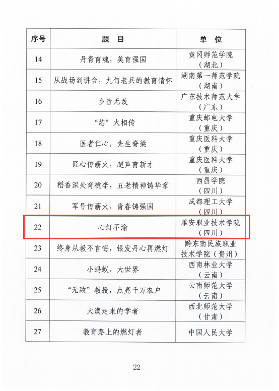 日前,教育部关工委公布了2025年“读懂中国”系列活动评审结果。我校凭借出色的组织工作和高质量的作品创作,斩获双重荣誉——微视频作品《心灯不渝》获评“优秀微视频”,学校荣获“2025年‘读懂中国’活动表扬单位”称号。“读懂中国”活动是教育部关工委联合中国教育电视台等单位打造的品牌活动,覆盖广、影响大。2025年活动以“弘扬时代精神,建设教育强国”为主题,吸引了全国超1100所高校、逾13万名大学生踊跃参与。能够...