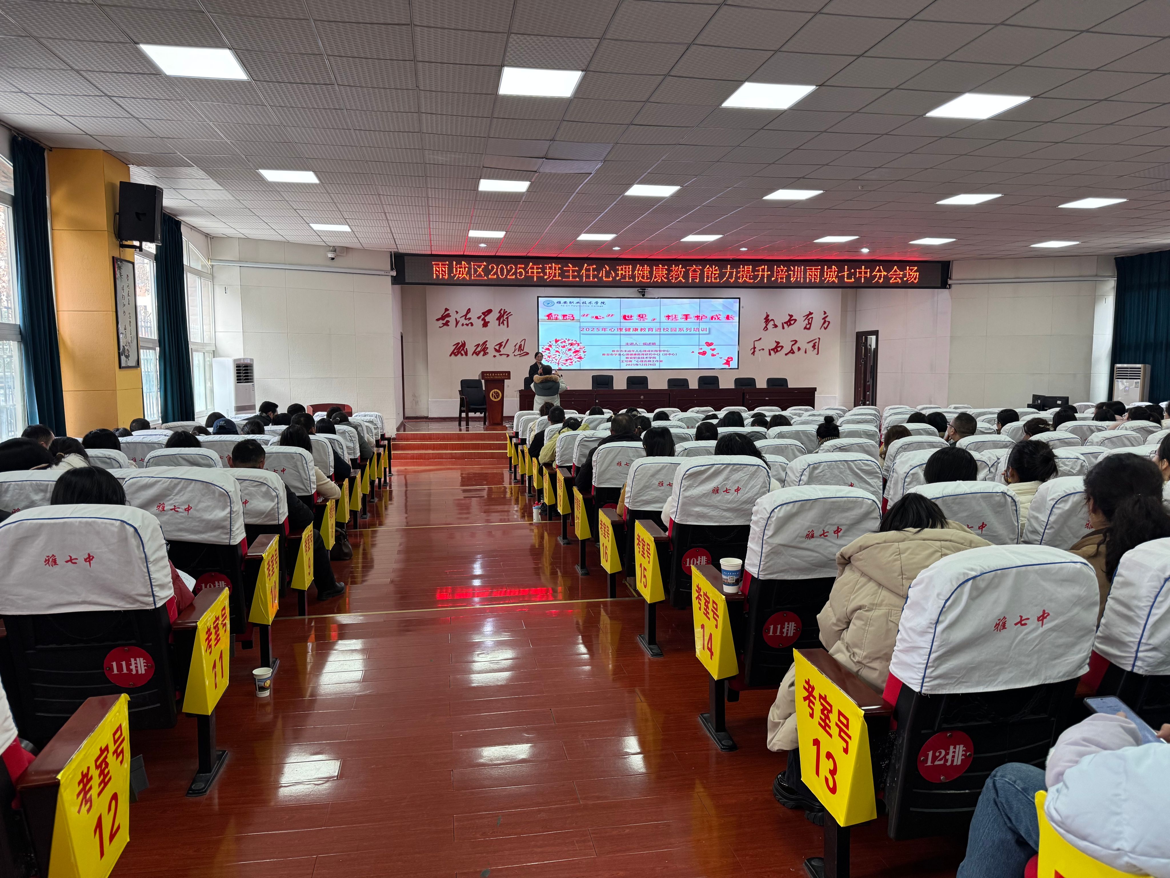 为扎实推进雅安市未成年人心理成长指导中心工作,大力提升青少年心理健康素养,培养德智体美劳全面发展的时代新人,11-12月,学校学生处牵头开展“解码‘心’世界,携手护成长”心理健康教育进社区、进校园系列活动,心理健康教育中心王可晖、侯述娟、燕莉梅三位教师分赴雨城区孝廉社区、水中社区,雨城区第七初级中学、第八初级中学,名山区蒙顶山实验小学开展系列心理健康专题讲座和团体辅导活动7场,服务中小学生及家长230余...