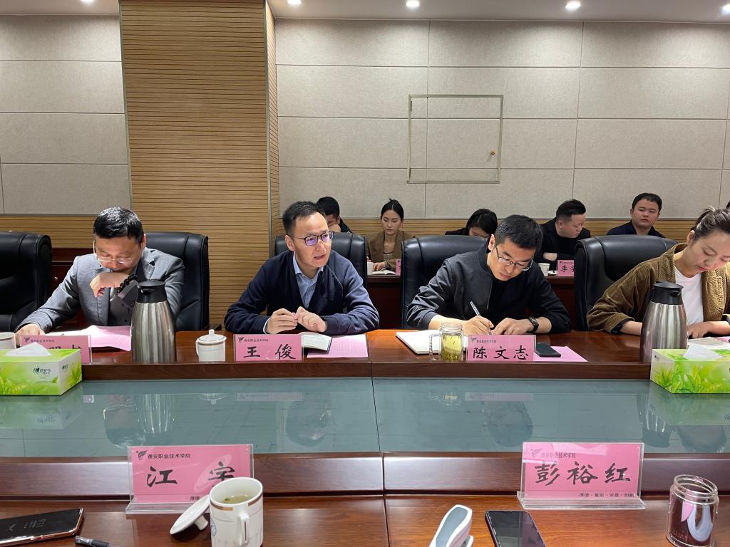 为进一步探索产教融合育人机制,促进教育链、人才链、产业链、创新链四链有机衔接,5月18日上午,川西产教融合示范区建设推进会暨产教融合发展专题研讨会在经开区303举行。雅安市产教融合发展专题调研组组长市委政研室主任张大金一行、经开区经济合作局副局长郑仪、雅安川西数据湖信息技术有限公司董事长王俊、雅安威亚科技有限公司总经理汪明书等企业代表、学院副院长彭裕红及产教处、相关二级学院负责人参加了会议。会议由副院长彭裕红主持。