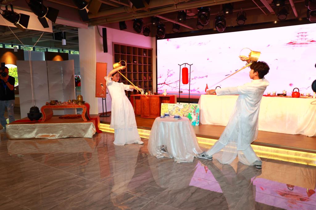 本届大赛开幕式由学院副院长彭裕红主持。开幕式在茶艺与茶文化专业学生表演的《品千年茶韵,庆百年华诞》茶艺节目和《龙行十八式》、《凤舞十八式》节目中拉开帷幕。