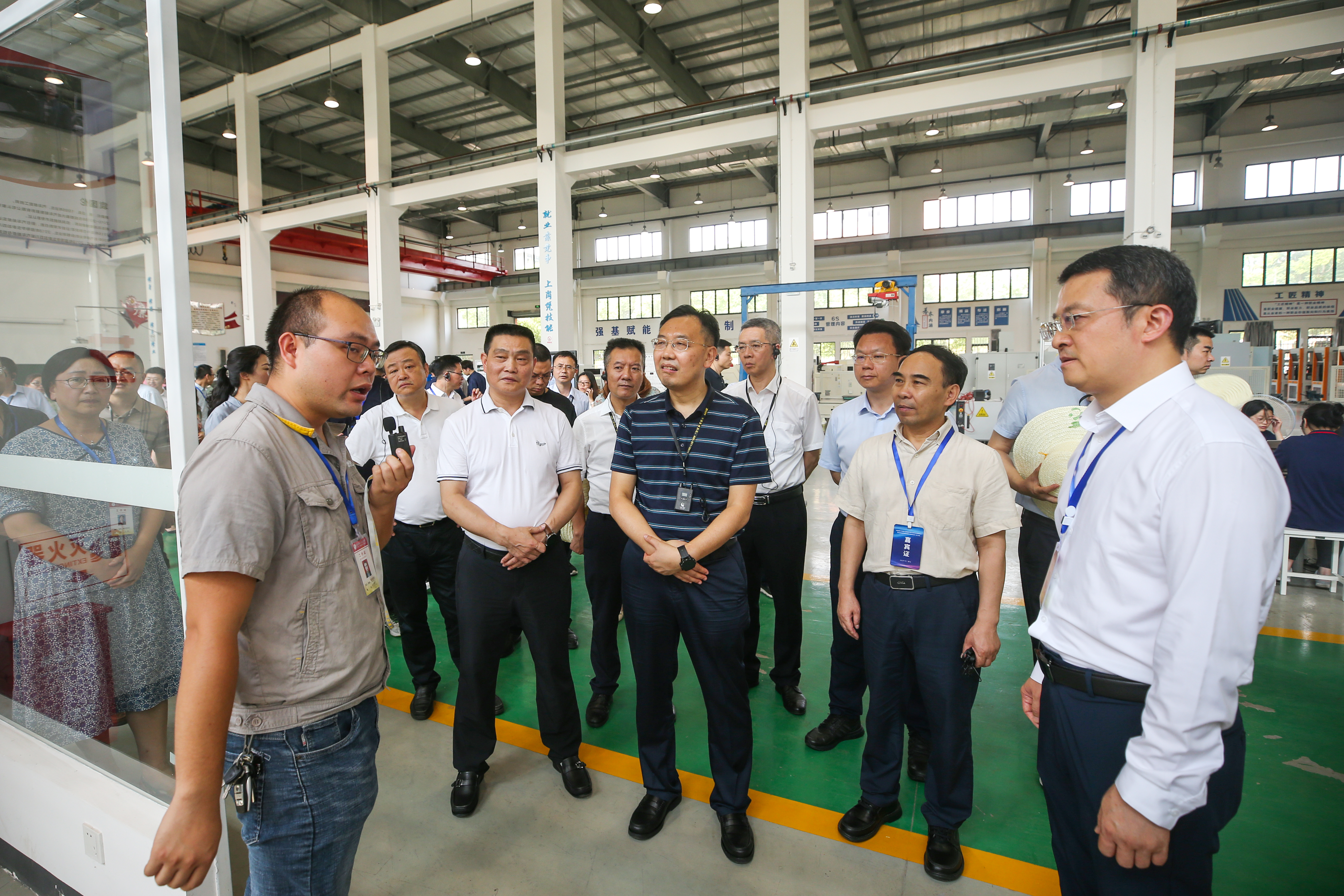 在现代制造实训中心,大家参观了教、学、做一体的智能制造车间师生实训现场,以及我校发挥职业教育实践技能优势,承接了西南交通大学车辆工程专业学生来校开展为期一周的汽车构造课程技能实训。了解了我校精密加工技术技能人才培养、人工智能实训、川西大数据中心技术技能人才培养等情况。