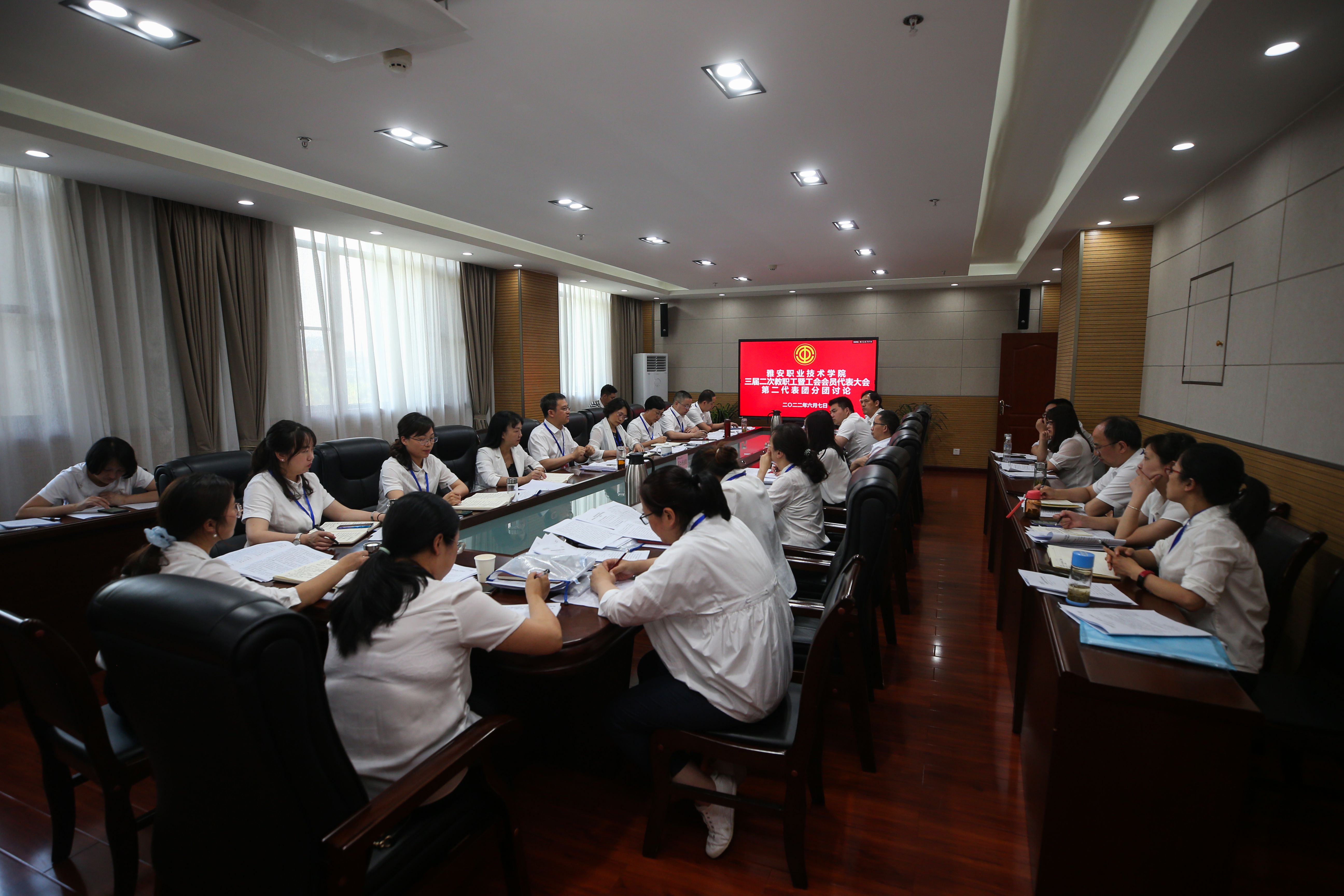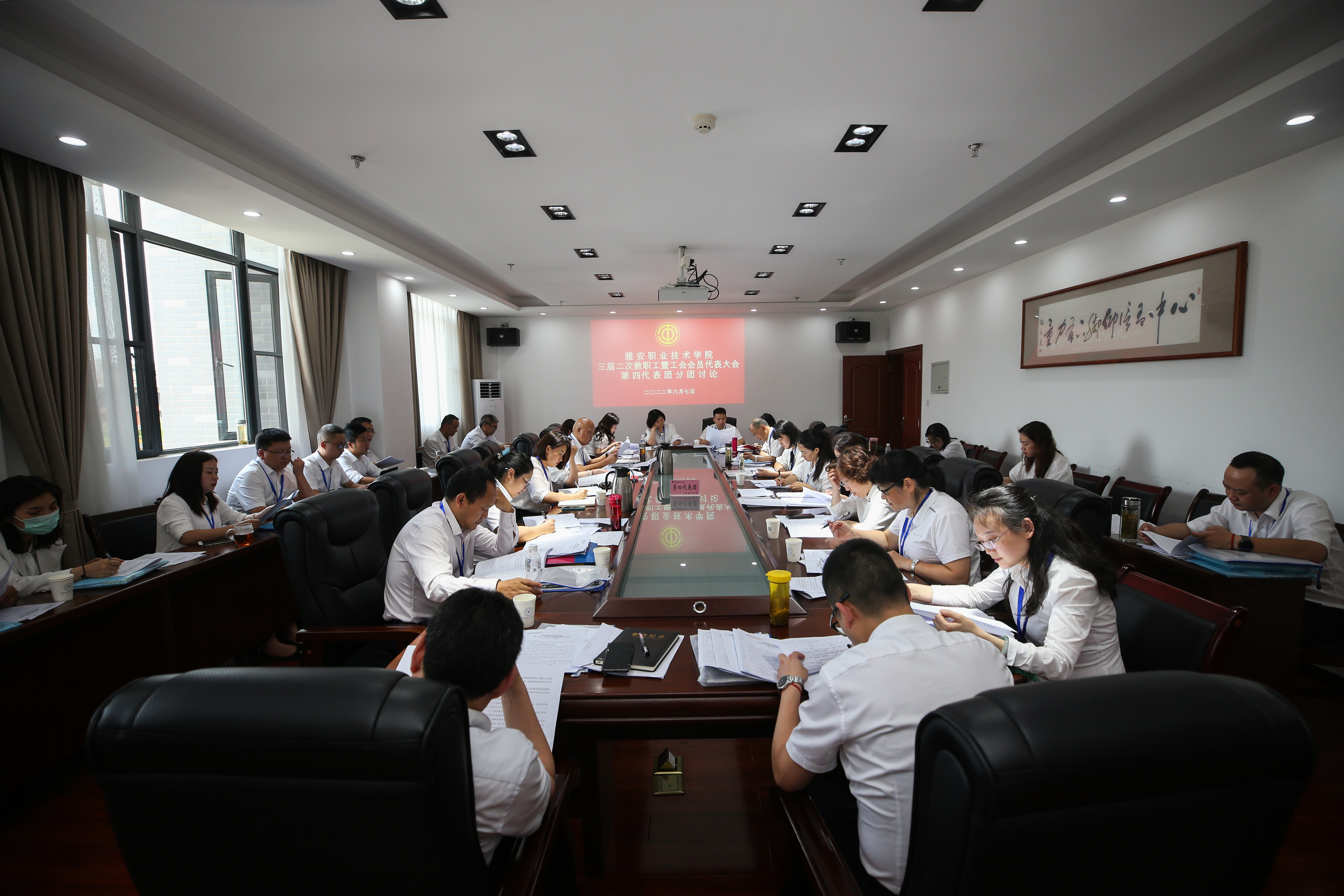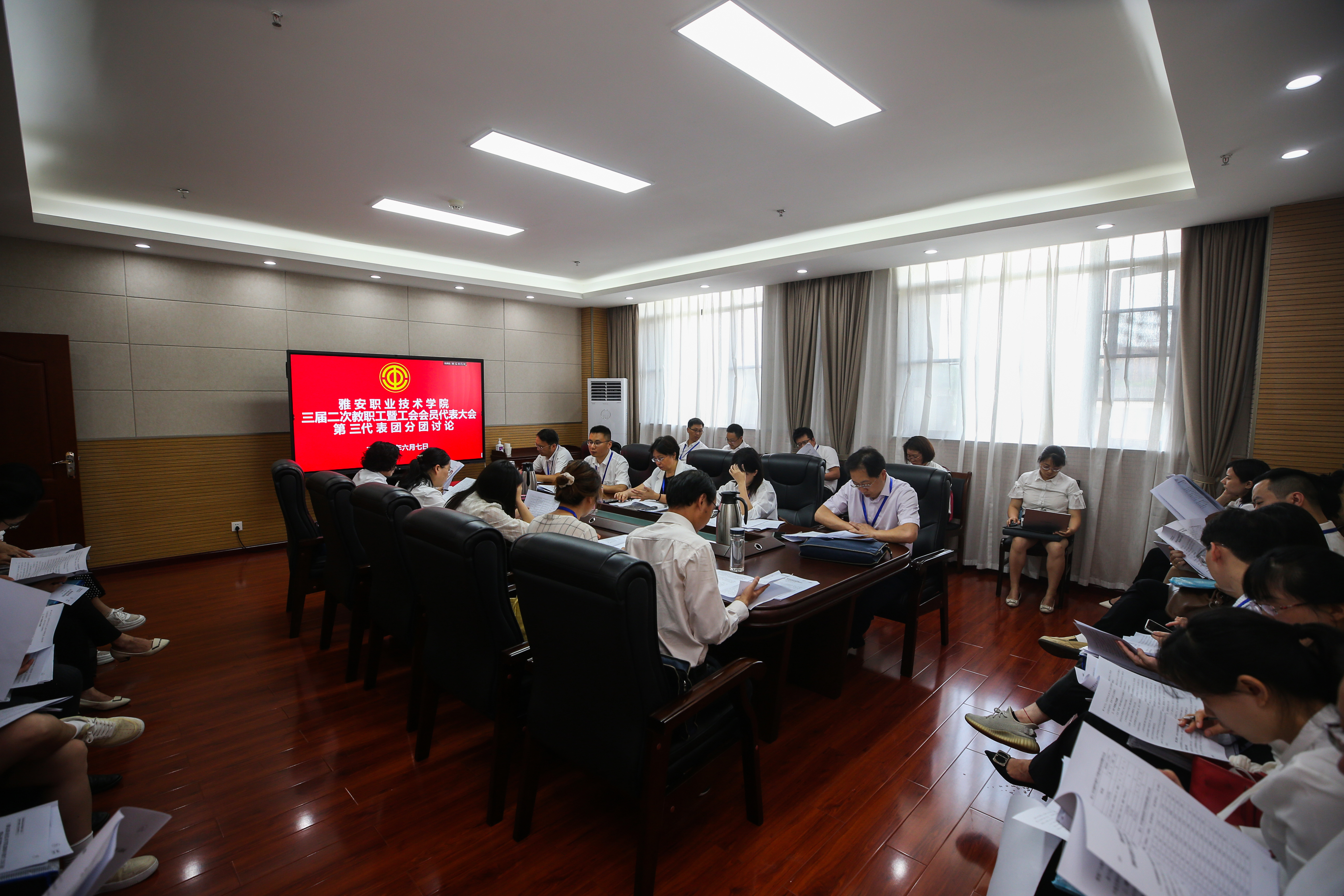 四个代表团分别对学院工作报告、工会工作报告、财务工作报告、工会经费审查报告、三届二次教代会提案审查报告、学院章程修订稿、公共租赁房管理办法及教师年教学工作量与课时费标准调整方案进行了认真讨论和审议,并在大会上表决通过了上述报告和文件。