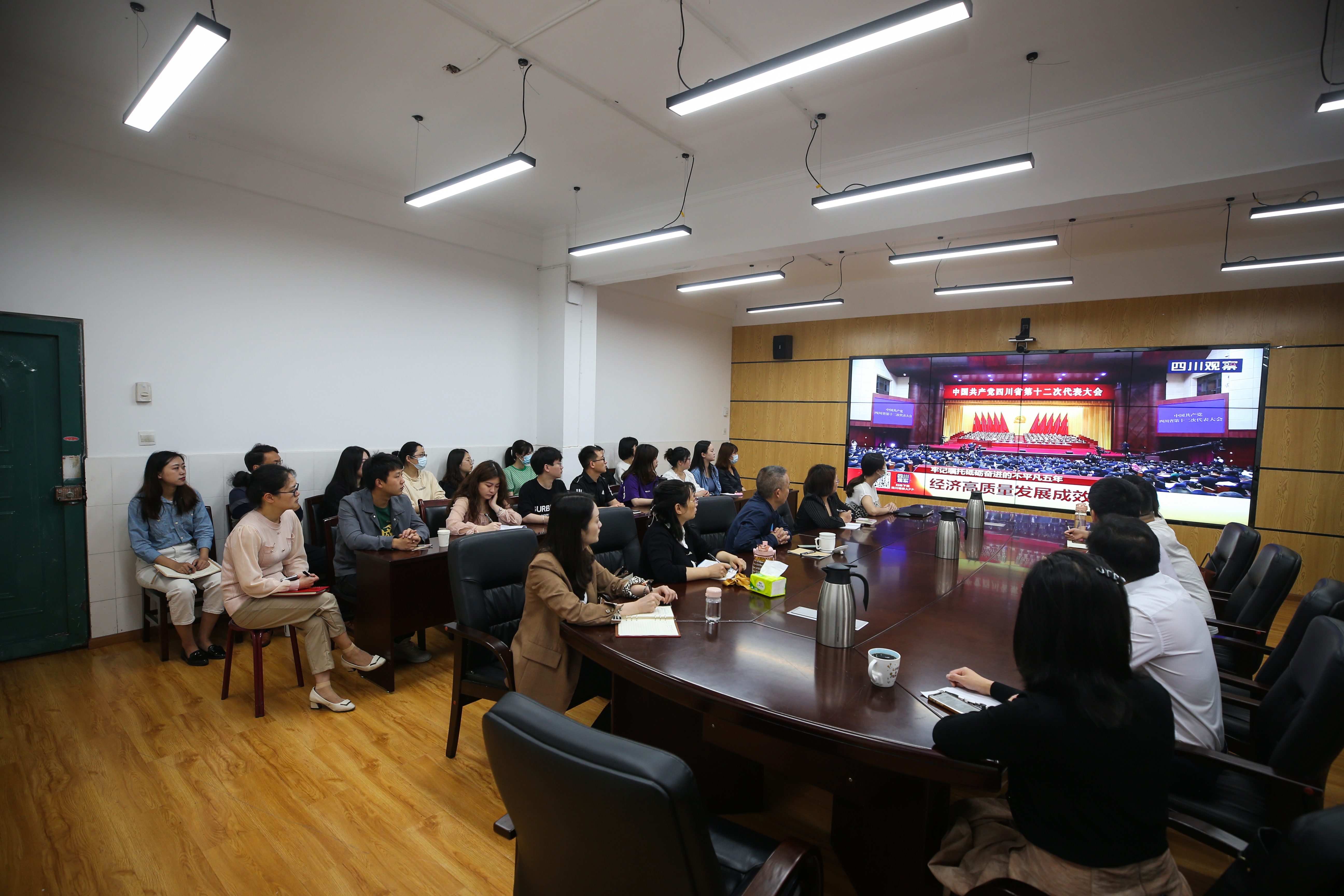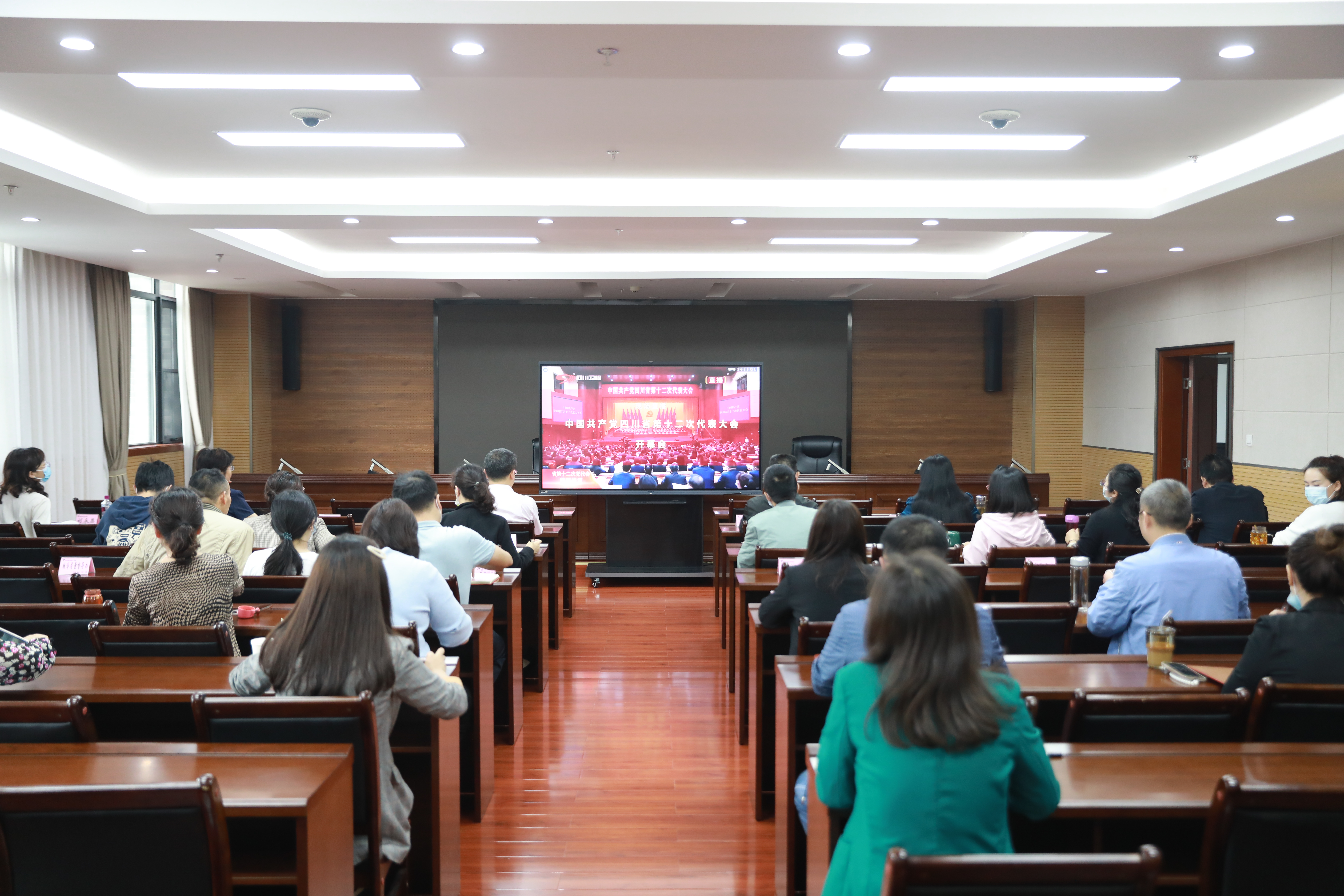 5月27日,中国共产党四川省第十二次代表大会在成都隆重召开。上午9时,学院党政班子成员、中层干部、各二级单位师生代表1000余人分别在三校区会议室、教室进行了集中收看,其余师生通过电视、电脑、手机等多种途径和方式进行收看。