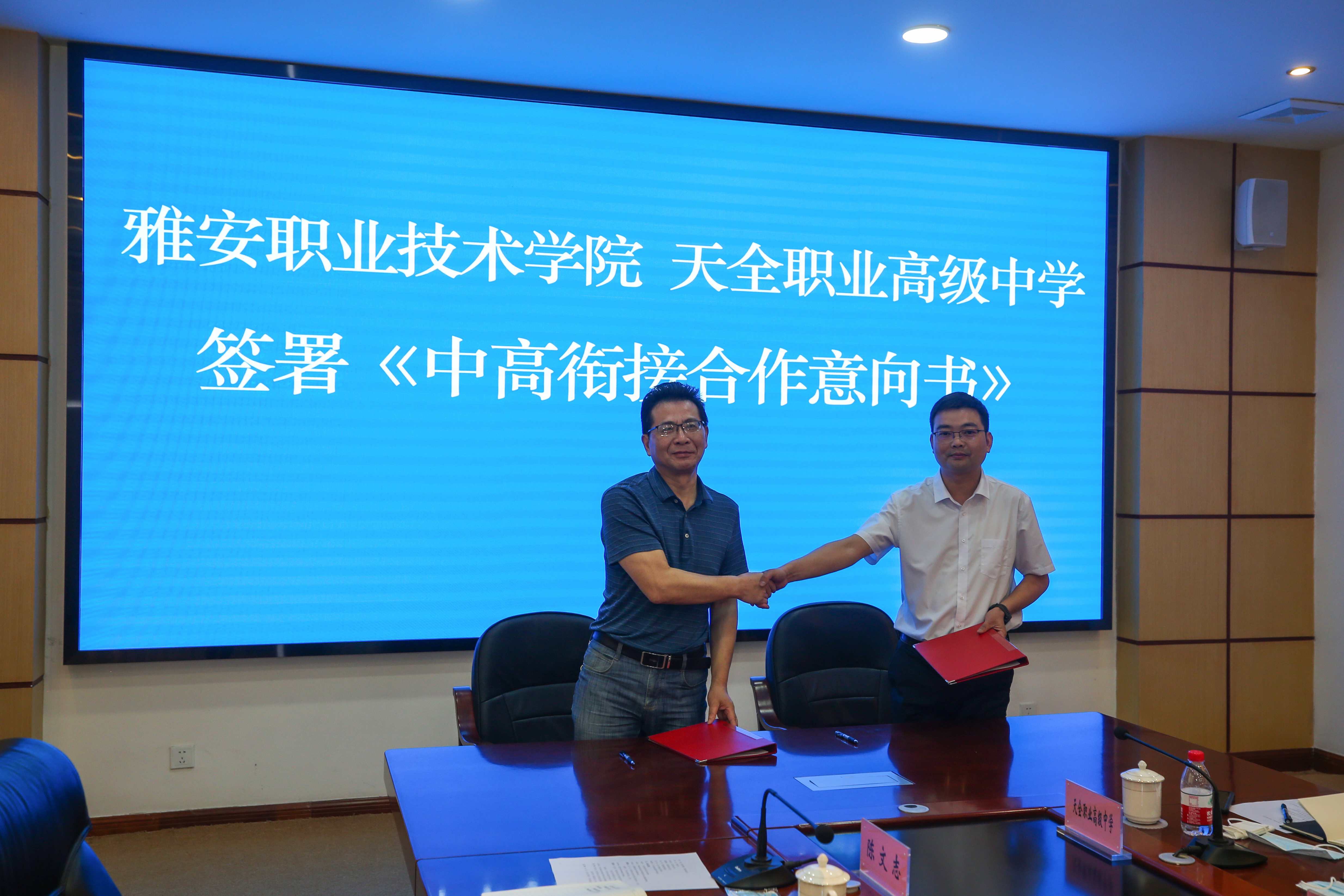 签约仪式上,我校分别与天全县人民政府、天全县职业高中签署了校县合作框架协议和中高职衔接合作协议,并为雅安乡村振兴学院天全分院授牌。