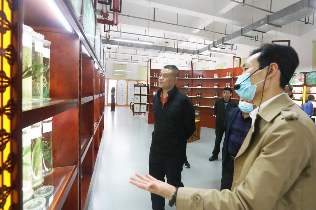 高福强一行参观了药学与检验学院食品药品生产性实训基地、中药种植园、中医药标本馆和中医与康复养生学院康复、中医推拿实验实训室等校内实训场地。学院相关负责人讲解介绍了我院中医药专业建设、实验实训室的建设、用途、教学使用效果和产业服务等情况。