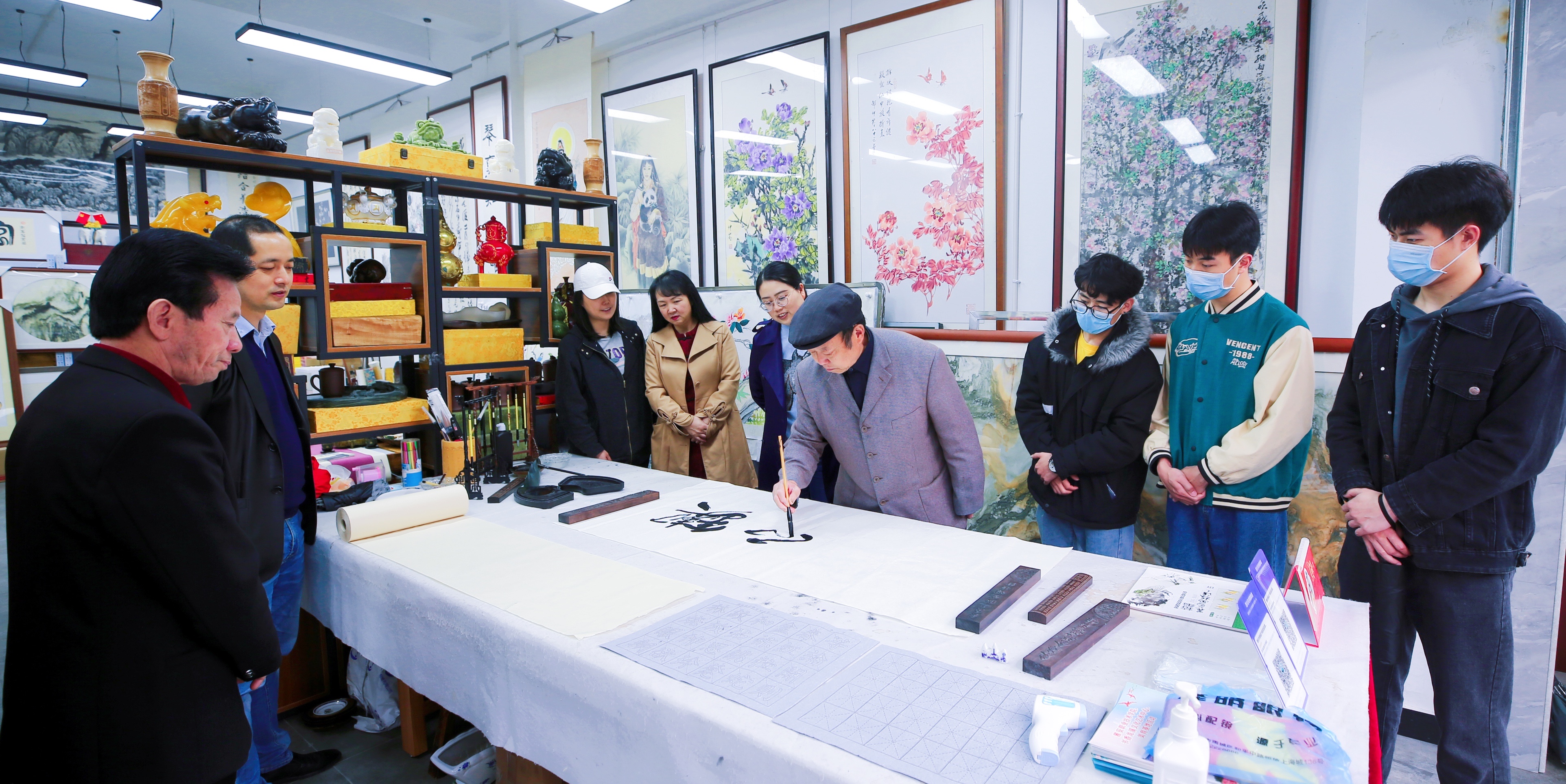 3月 24日下午,学院党委副书记付洪涛带队前往学院校外美育基地参观指导,与共建企业负责人余志均洽谈推进美育合作事宜。学院党委委员、宣传统战部部长郭英才,师范学院党总支书记冯良亮、副书记陆小路和学生代表随行前往。