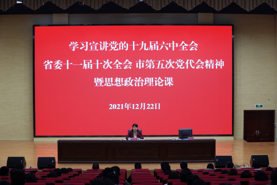 在全院深入开展学习贯彻党的十九届六中全会、省委十一届十次全会和雅安市第五次党代会精神之际,12月22日下午,市委副书记、市长彭映梅同志到校作专题辅导报告暨讲思想政治理论课。在学院经开区校区聚雅厅学生活动中心,彭映梅与学院师生面对面交流,宣讲中央、省委和市第五次党代会精神,勉励师生要采取多种形式全面深入学习领会全会精神,从党的百年奋斗重大成就和历史经验中增强“四个意识”、坚定“四个自信”、做到“两个维护”,了解发展大势、找准人生坐标、跟上时代大潮,为加快建设川藏铁路第一城、绿色发展示范市作出积极贡献,在新征程上更好发挥高校优势、展现青年担当。学院党委书记李春模主持报告会。