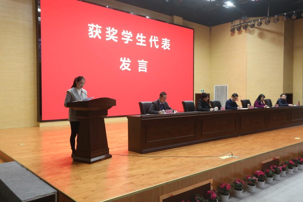 黄诚向全体获奖学生和集体表示热烈的祝贺。并对学生提出了三点希望:一是夯实信仰之基,做中华民族伟大复兴的实践者;二是激发创新之力,做劳模工匠的攀登者;三是保持坚毅之心,做担当奉献的奋斗者。号召广大师生迎着风浪,永葆严于律己、昂扬向上的奋斗激情,抓抢时代机遇,凝聚力量,铸就无悔青春梦想。