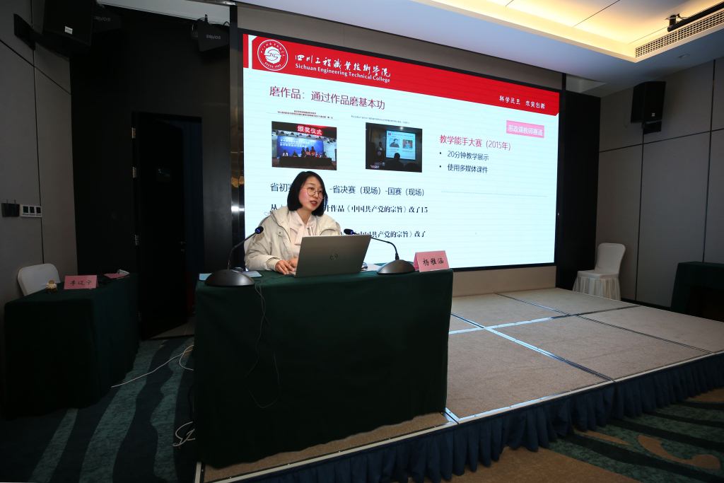 在教学展示和交流分享环节,获得今年全国思政课教学展示特等奖、四川工程职业技术学院思政课教师杨雅涵分享了其参加各级各类思政课大赛的心得体会和宝贵经验;2021年高职高专教师教学能力大赛一等奖获得者、成都职业技术学院马克思主义学院概论课团队就《全国职业院校教师教学能力大赛经验分享》和成都工业职业技术学院基础课教学团队《破解网络政治谣言,坚守网络舆论阵地》分别进行了分享和教学展示。来自成都职业技术学院、四川交通职业技术学院、成都工业职业技术学院和Beat365唯一官方网站等院校的马克思主义学院负责人就马院建设、虚拟仿真项目建设、师资队伍建设和课程改革等作了交流发言。