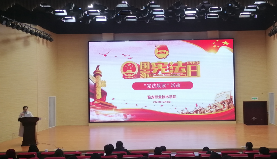 为认真贯彻落实习近平法治思想,大力弘扬宪法精神,深入开展大学生廉洁教育,12月3日,院团委、纪检监审处及学生处联合开展“宪法宣传周”暨“大学生廉洁教育活动月”启动仪式。活动在经开区校区聚雅厅举行,学院党委委员、纪委书记杨洪媛出席启动仪式并讲话,院团委、学生处及各二级学院负责人、学生代表90余人参与活动。