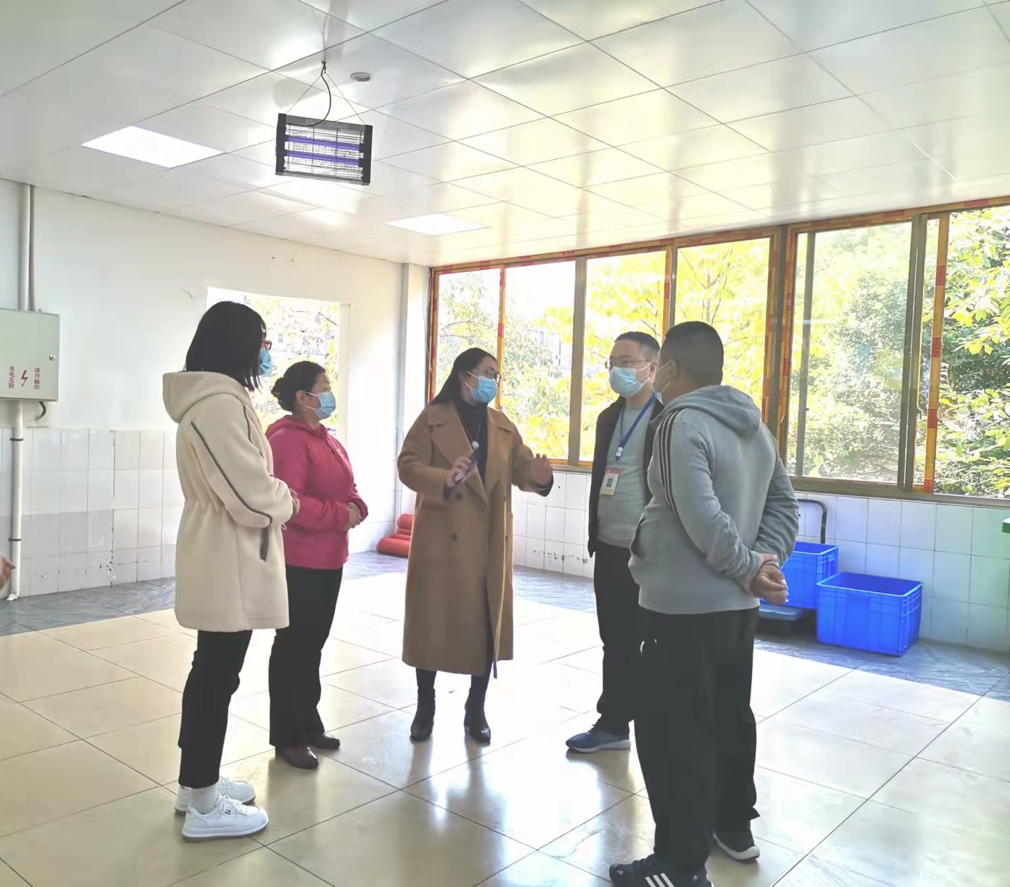 11月10日上午,学院工会主席夏安琼到青年路校区现场督导食堂及菜鸟驿站疫情防控工作。基建后勤处处长王伟才陪同检查。