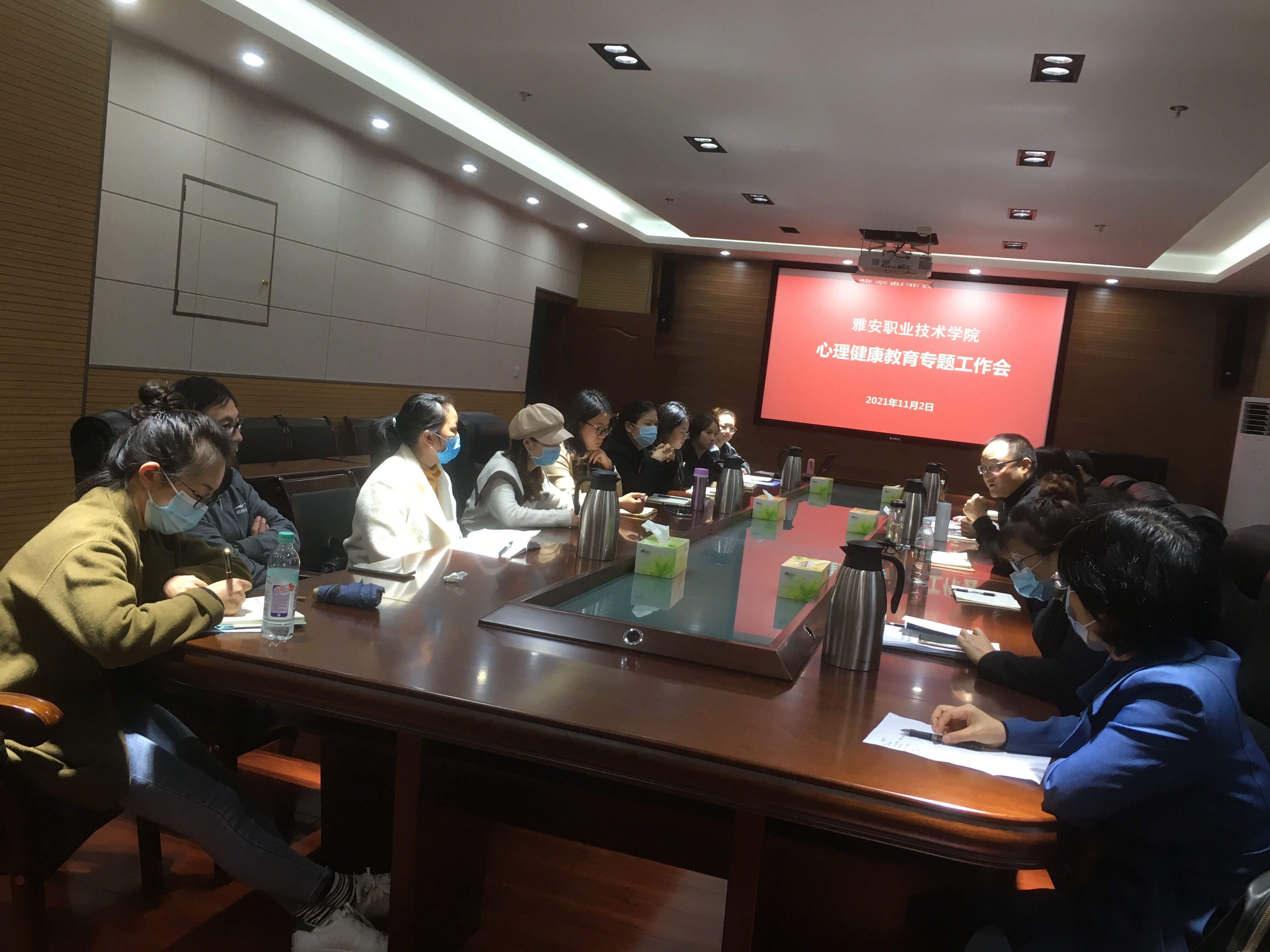 11月2日下午,学院在经开区303会议室召开心理健康教育专项工作会,学院党委副书记付洪涛,党委委员、副院长樊先茂,学生处处长姚婕,马克思主义学院院长李霓,副院长王坤蓉,人事处副处长洪松林,以及心理健康教育中心和心理教研室的心理教师参加会议。