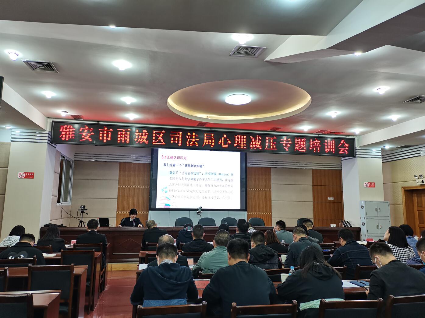 10月14日上午,马克思主义学院心理健康教师张瑞娟在雨城区政府第三会议室进行了一场心理健康减压专题讲座,区司法局机关全体干部以及司法助理员共60余人参加。