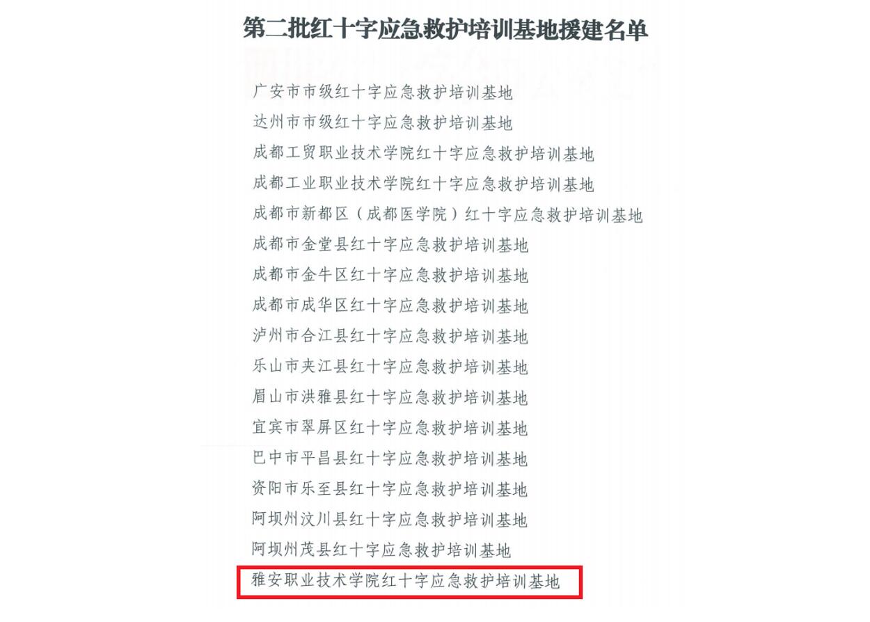 近日,四川省红十字会办公室印发了《关于援建2021年第二批红十字应急救护培训基地项目的通知》(川红办发〔2021〕30号),经省红十字会研究,确定2021年第二批红十字应急救护培训基地援建项目17个,Beat365唯一官方网站红十字应急救护培训基地成功入选。