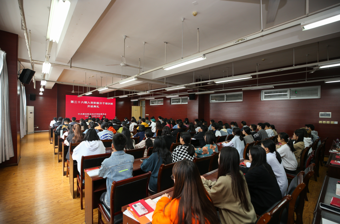 开班典礼在嘹亮的国歌声中拉开帷幕。付洪涛在动员讲话中指出,参加入党积极分子培训是入党积极分子熟悉和掌握党的基本知识、基本理论的需要,也是严格党员发展程序,提高党员发展质量的需要。她对学员们提出三点希望:一要坚定信念、筑牢三观,端正入党动机,珍惜难得的培训机会,学好党的基本理论知识,坚定永远跟党走的信念;二要勤奋学习、认真实践、报效祖国,树立正确的世界观、人生观、价值观,用实际行动为党旗增辉;三要严于律己、起好示范,加强自身修养,不仅在思想上入党更要在行动上入党。