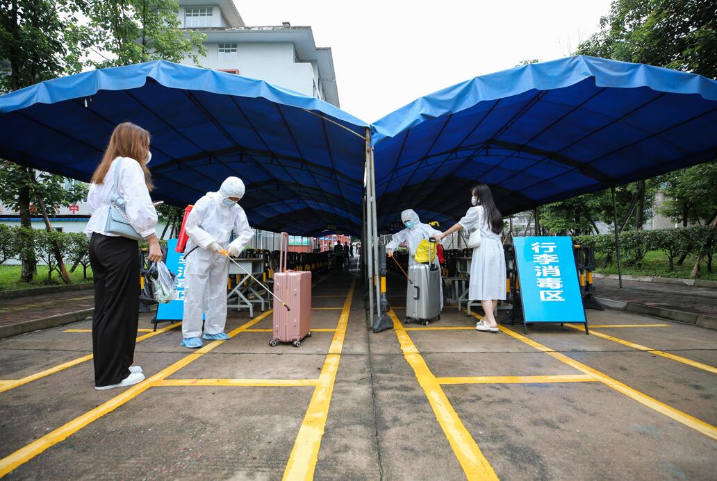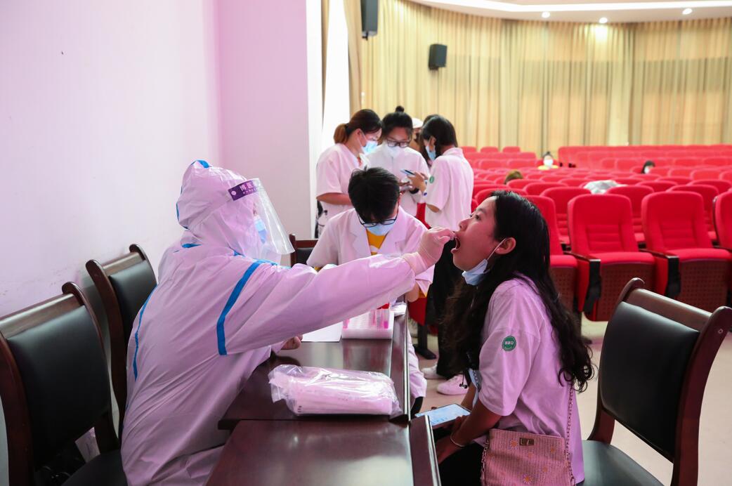 同学们分校区,按着标识标牌依次间隔排队进入,在校门口出示本人学生证或身份证、“四川天府健康通”绿码和核酸报告,全力配合学院值班保安的例行检查、校医室医务人员的体温检测、核酸报告查验、辅导员的审验注册后有序入校。同时,按照省教育厅的要求,学院及时组织省外返校学生进行核酸检测,附属医院安派采集人员到各校区核酸采集点采集标本,连夜检测出结果,以确保师生身体健康和校园安全。
