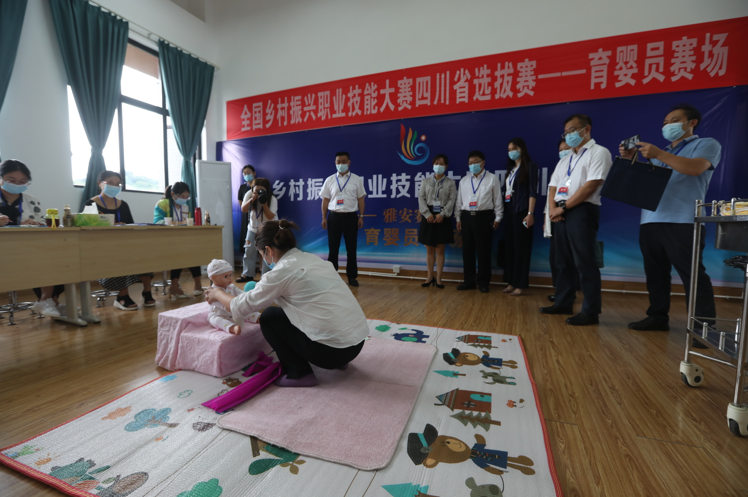 开幕式后,与会领导、嘉宾前往各赛点观摩。此次大赛以“弘扬工匠精神 建设技能四川”为主题,紧密围绕四川省乡村振兴特色产业发展,充分对接全国乡村振兴职业技能大赛赛项要求,以市(州)人力资源和社会保障局为单位组队报名参赛。雅安主赛场共设7个赛项,学院承办了护理员、育婴员、电子商务师、茶艺师、餐厅服务员5个赛项。雅安主赛场有来自各市州的139位技术能手参与角逐,学院8名师生参赛。大赛分设职工组和学生组2个组别,设一、二、三等奖,获得第一名的选手,将代表四川省参加9月下旬在新疆乌鲁木齐举办的全国首届乡村振兴职业技能大赛,属于职工且符合相关条件的,还可以申报“四川省技术能手”。