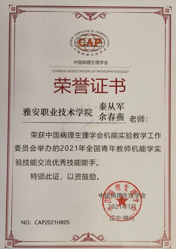 第二阶段的内容是第三届全国青年教师机能实验技能交流,由于组委会的理念是以技能交流和切磋为主,倡导友谊第一、比赛第二,此次交流设立了优秀技能能手和技能能手两个奖项。经过笔试考试和技能操作两项激烈的角逐,最终,秦从军和余春燕两位老师从众多的参赛队伍中脱颖而出,获得了高职家兔组优秀技能能手的称号。