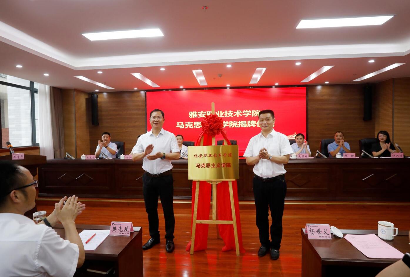 学院党委书记李春模在致辞中指出,学院党委决定在原思想政治理论课教学部的基础上成立马克思主义学院,旨在进一步加强学院思想政治教育工作,提升思想政治理论课建设水平,不断构建“大思政”育人格局。这不仅是名称上的变化,更是学院坚持社会主义办学方向、落实立德树人根本任务、培育和践行社会主义核心价值观、持续推动学院高质量内涵式发展、引导广大青年学子更好践行“请党放心、强国有我”誓言的重要举措。他对马克思主义学院的建设发展,提出坚持政治建院、坚持质量立院、坚持人才兴院、坚持管理治院等“四个坚持”要求,表示学院将以此次马克思主义学院成立为契机,进一步深入贯彻党的教育方针和省委、市委全会精神,解放思想、勇于担当、善作善成,努力争创省“双高”院校,为雅安建设“三个高地”、发展“四大经济”、打造“五宜幸福地”提供更加有力的技术技能人才支撑。