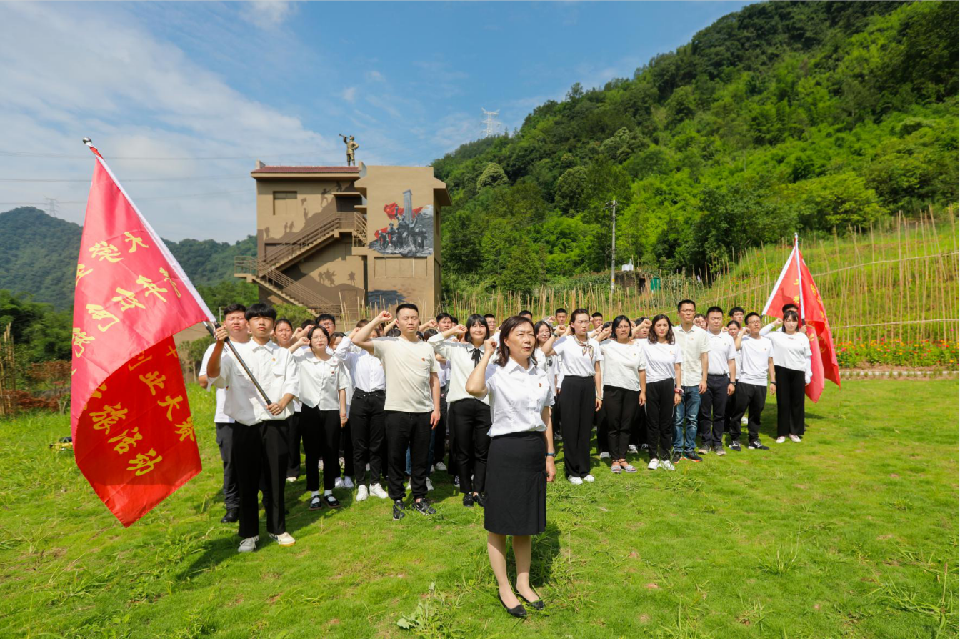 由二级学院团总支书记及学生代表组成的党史教育实践小队高举“党史实践团”旗帜,齐唱《没有共产党就没有新中国》等红歌,昂首阔步重走红军运粮道,感悟红军精神,坚定理想信念。