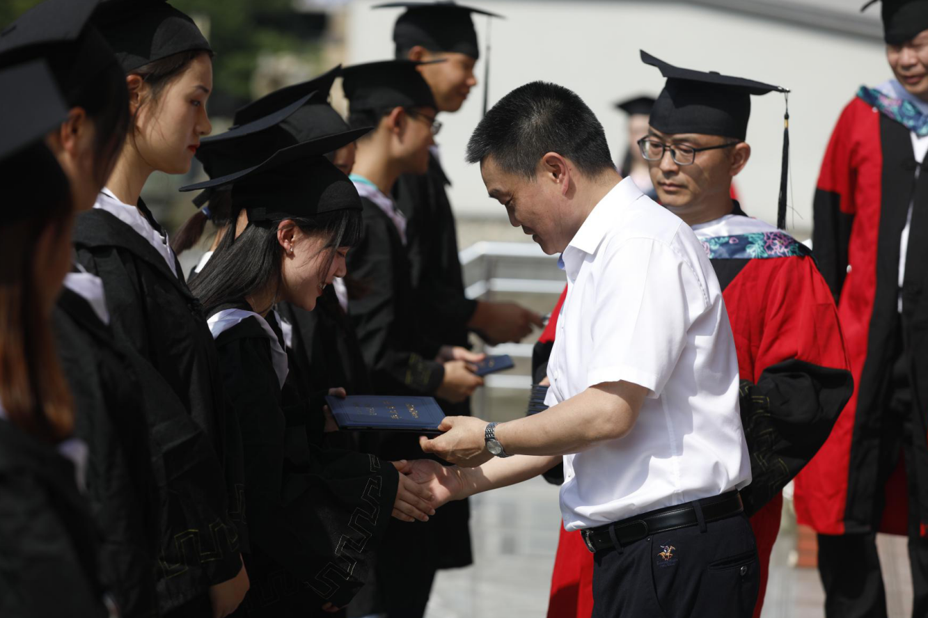 随后,李春模及各二级学院院长与教师代表共同为毕业生代表颁发毕业证书。伴随着激昂的《毕业歌》,学院2021届毕业典礼落下帷幕。