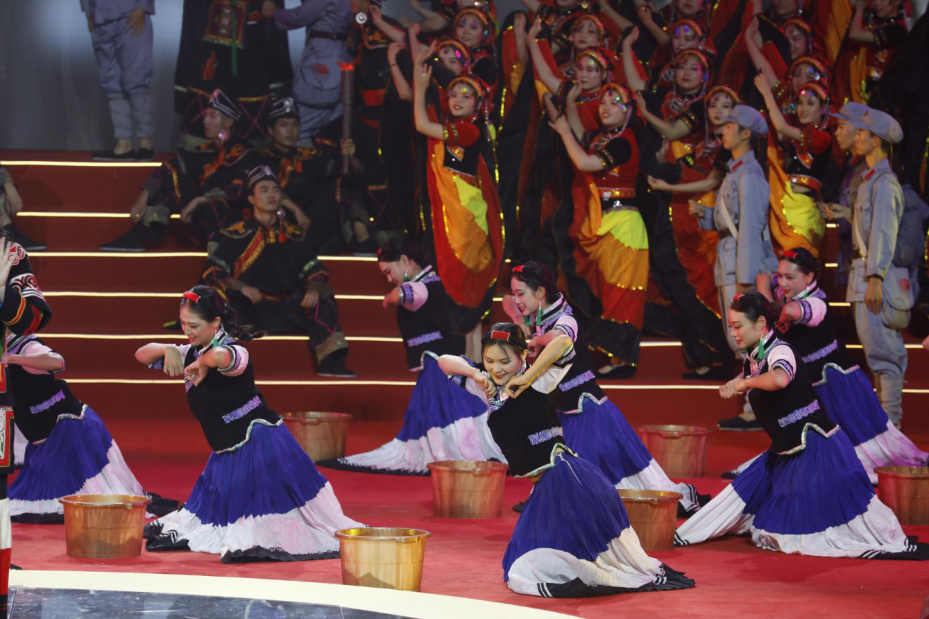 “台上一分钟,台下十年功”。师生在晚会上的精彩绽放,离不开他们背后辛勤的努力和付出。自五月底接到任务后,师范学院负责编舞和领唱的翁全芬老师、王晓燕老师,以及全力配合、参与表演的刘瑾瑾、王珏玉、刘玉立、王昌宇等老师,为了节目的精彩呈现,他们深入了解歌曲的历史背景、精心编排舞蹈动作、认真教导学生、反复排练打磨。同学们面对期末复习备考的压力,也没有丝毫松懈,利用课余时间,一边复习备考,一边坚持紧张的排练。排练中,大家用心用情用功共同克服了任务重、时间紧、道具多、动作难度大等困难,精益求精,高标准、高质量完成了演出任务。期间,学院党委副书记付洪涛多次到排练现场看望慰问参演师生,给他们加油鼓劲;宣传统战部、师范学院、学生处也多次召开工作协调会,明确责任分工、及时解决工作推进中的问题,有效地保障了排练和演出的顺利进行。