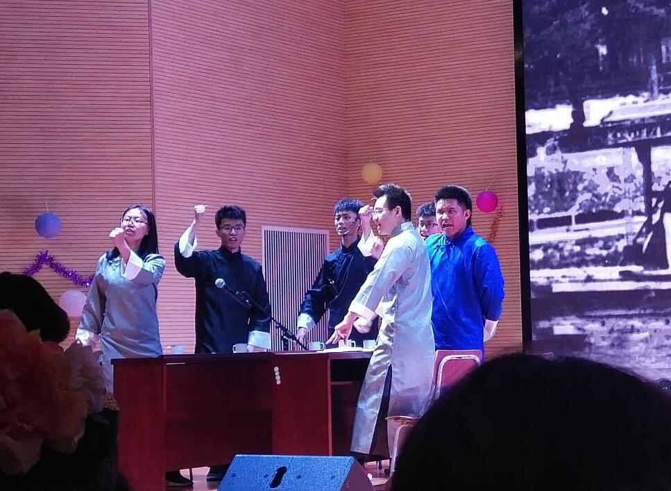 为弘扬中华民族优秀传统文化,增强文化自信、民族自豪感,学院瀚文文学协会于6月6日下午在经开区校区聚雅厅举行第一届国风文化联欢会。经管学院直属党支部书记高运荣,院团委副书记叶芋伶、郭庆出席大会,200余名师生代表参与晚会。