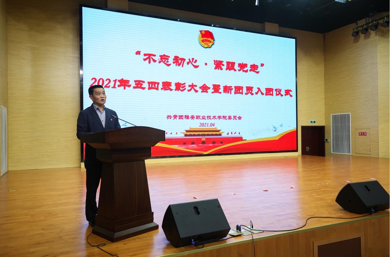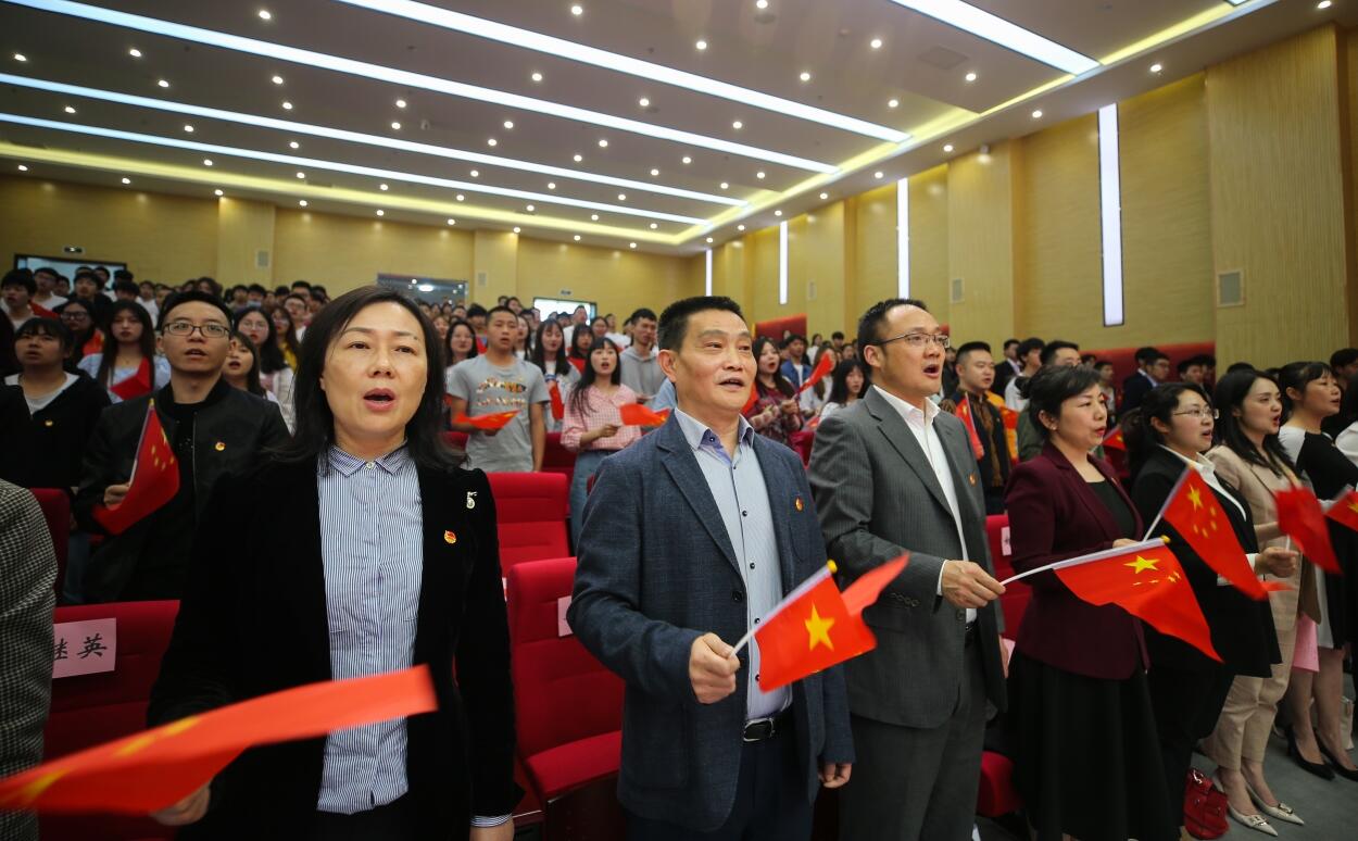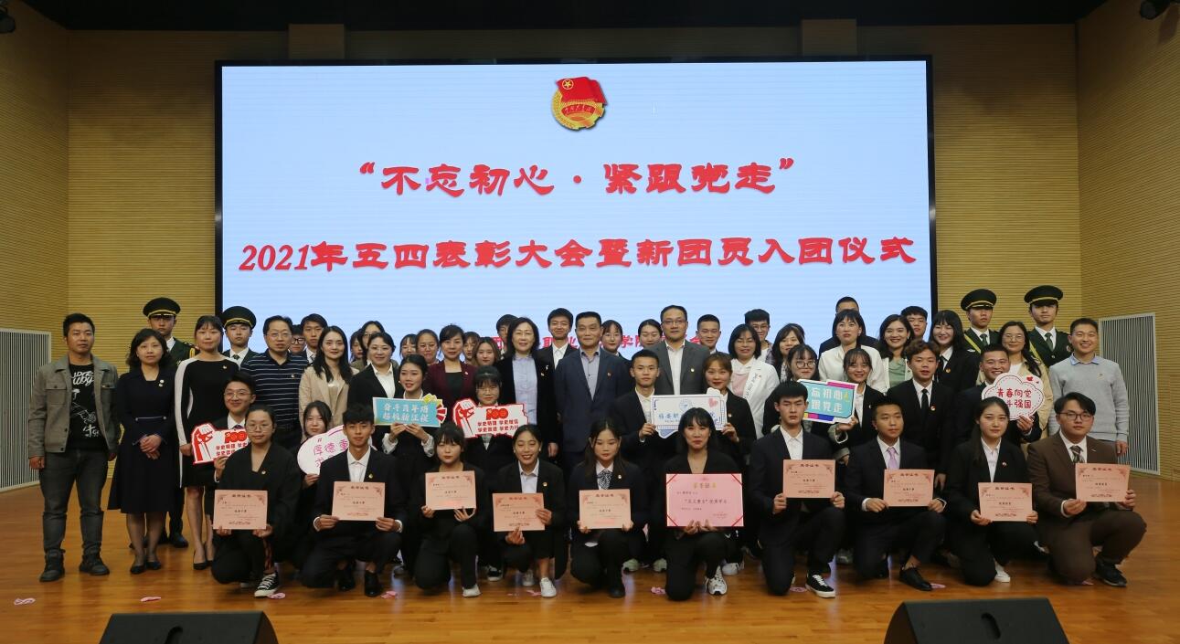 为庆祝中国共产党成立100周年、五四运动102周年,表彰学院共青团工作中涌现出的先进集体和个人,引导广大团员青年争先出彩,4月29日,学院“不忘初心·紧跟党走”2021年五四表彰大会暨新团员入团仪式在经开区校区聚雅厅举行。学院党委书记李春模,党委委员、副院长樊先茂,党委委员、纪委书记杨洪媛出席大会,相关部门及二级学院负责同志、团总支书记、副书记以及团员代表300余人参与大会。
