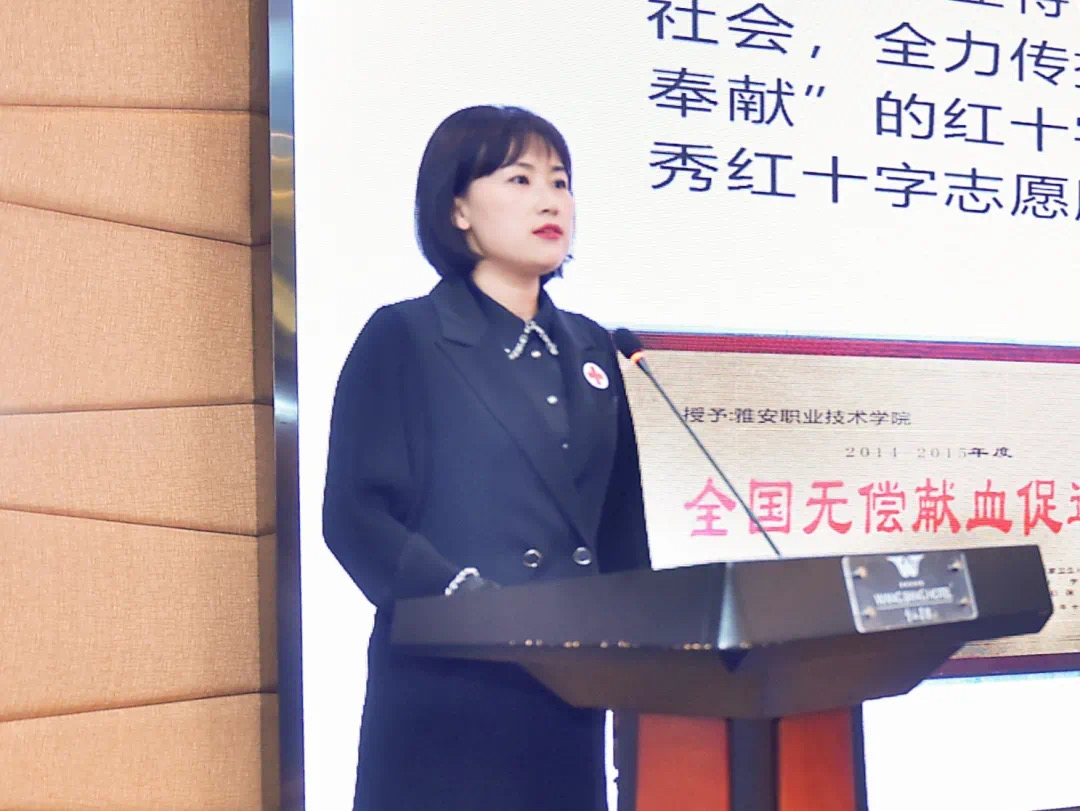 叶芋伶代表学院红十字志愿服务队作交流发言:一直以来,学院都高度重视红十字会志愿服务工作,在省、市红十字会的指导下,结合学院专业特色将红十字精神融入学校育人体系,广泛、深入、持久地开展特色志愿服务活动,以此为载体加强学生思想道德修养,倡导青年大学生关爱生命、关爱健康,培养青年大学生的社会责任心和使命感。