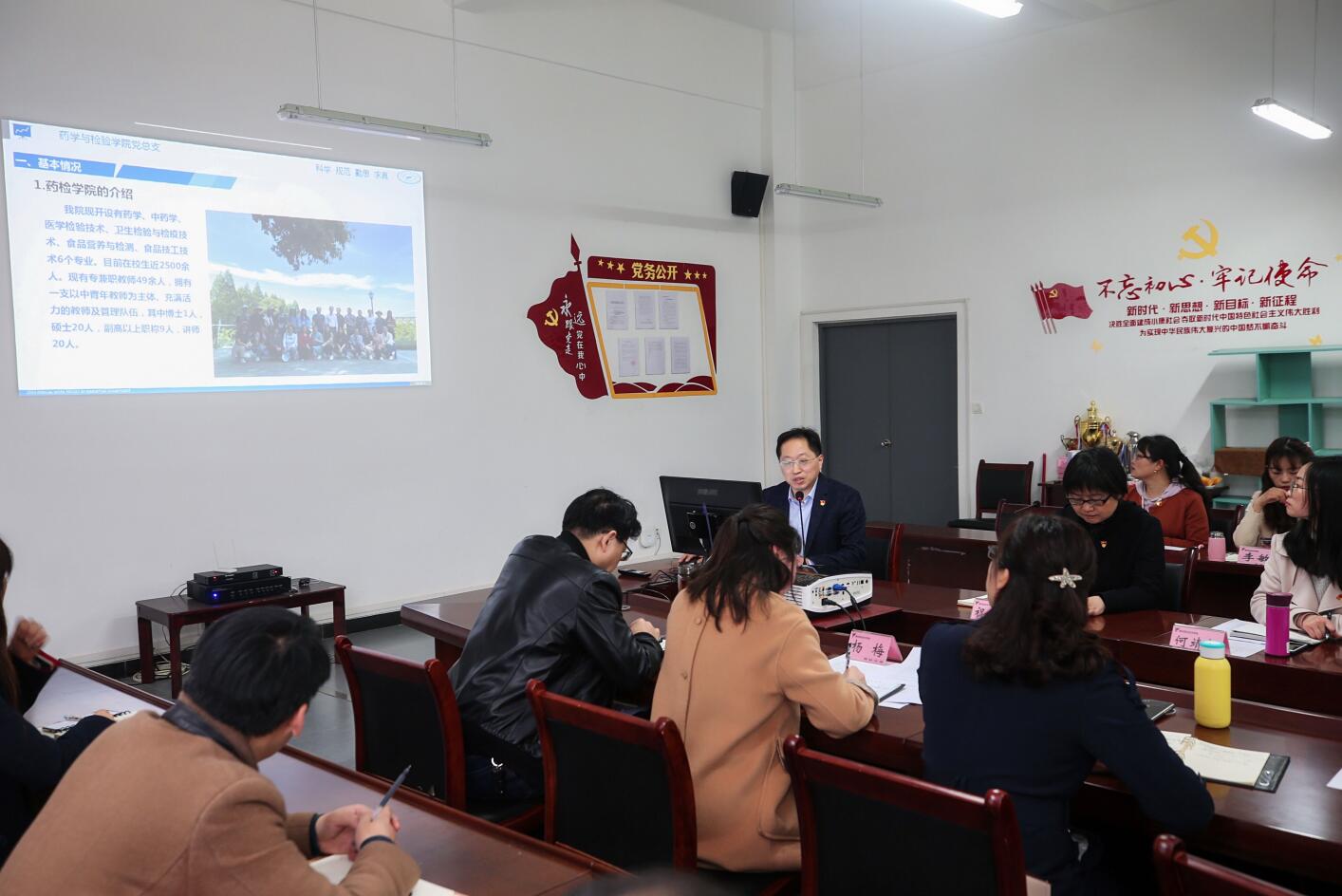 4月13日下午,学院党组织书记学党史暨“双带头人”教师党支部书记工作室经验交流会在经开区校区药学与检验学院205会议室召开。党委委员、智能制造与信息工程学院党总支书记宋立智,党委委员、组织部部长、人事处处长刘永恩,各党总支(直属党支部)书记、副书记和二级党支部书记参加了会议。会议由组织部副部长、人事处副处长杨梅主持。