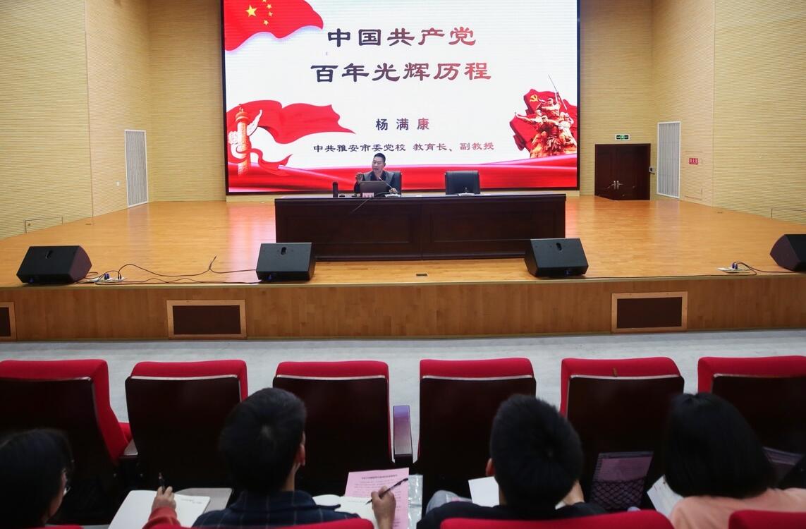开班典礼结束后,雅安市委党校校务委员、教育长、党史党建教研室主任杨满康副教授以《中国共产党百年光辉历程》为题,以中国共产党建党100周年历程为主线,从“开天辟地、改天换地、翻天覆地、惊天动地”四个方面系统阐述了中国共产党的百年光辉历程,并用“十三个坚持”作了全面总结。