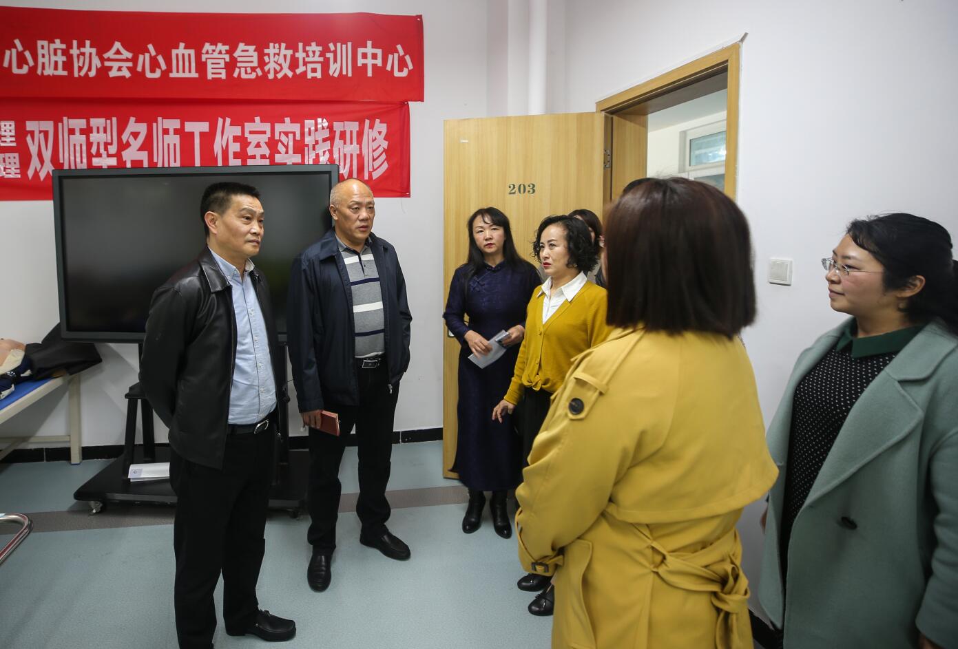 李春模一行实地查看了美容生产性实训基地和AHA实训室,了解了实训室建设、使用情况以及培训开展情况。座谈会上,护理学院院长王静主要就护理学院建设发展情况、培训工作开展情况及存在的主要问题、下一步工作思路等方面做了详细汇报。与会的黄丹、张雪庆等老师分别结合自己的工作谈了感想和认识。