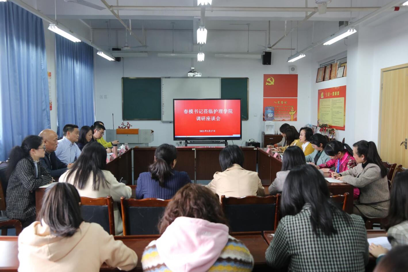 3月17日,学院党委书记李春模带队深入护理学院调研,不断推动“大学习、大走访、大调研”活动走细走实。学院党委副书记付洪涛,党委委员、副院长樊正康陪同调研,党政办、宣传统战部、教务处负责同志参与调研。